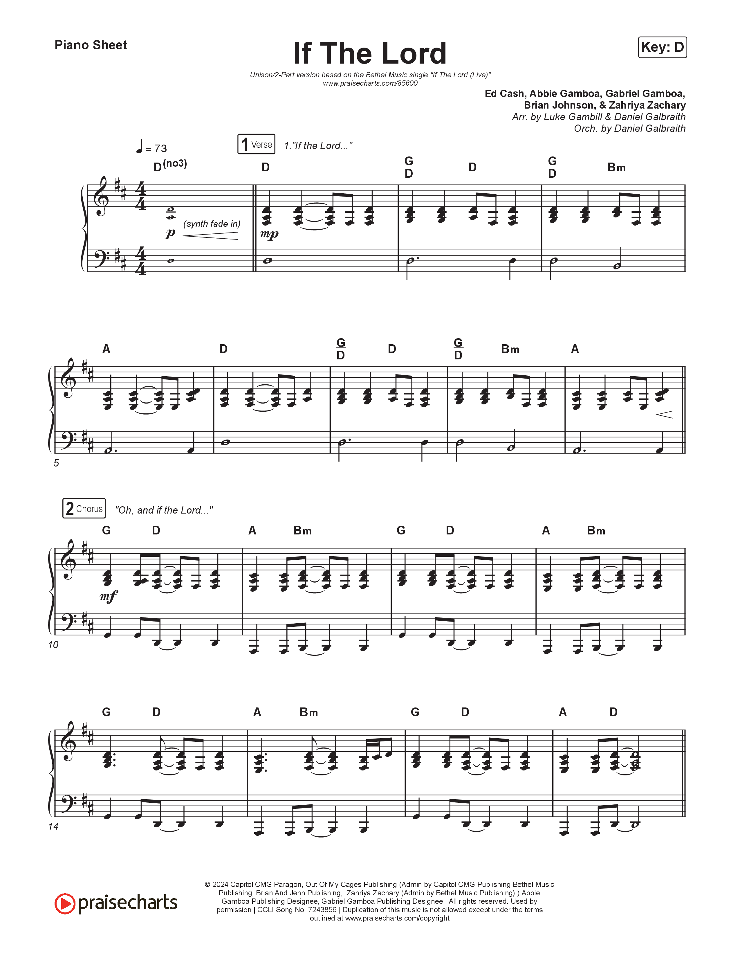 Download the piano sheet for If The Lord (Unison/2-Part) by Bethel Music / Zahriya Zachary / Arr. Luke Gambill, from the album If The Lord. This song was arranged by Luke Gambill / Daniel Galbraith in the key of D.