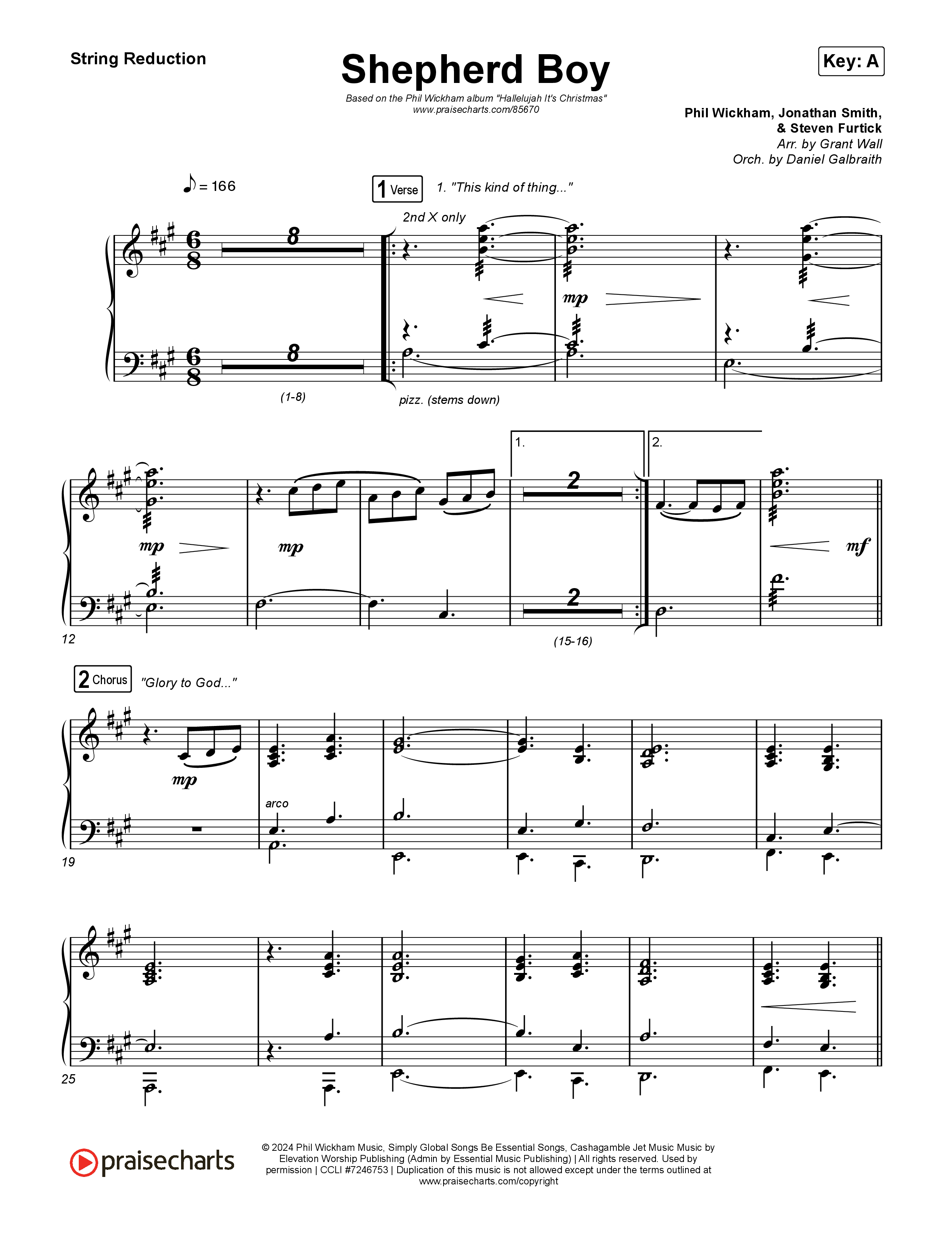 Download the String Reduction sheet music for Shepherd Boy by Phil Wickham, from the album Hallelujah! It's Christmas!. This song was arranged by Grant Wall / Daniel Galbraith in the key of A, Ab.