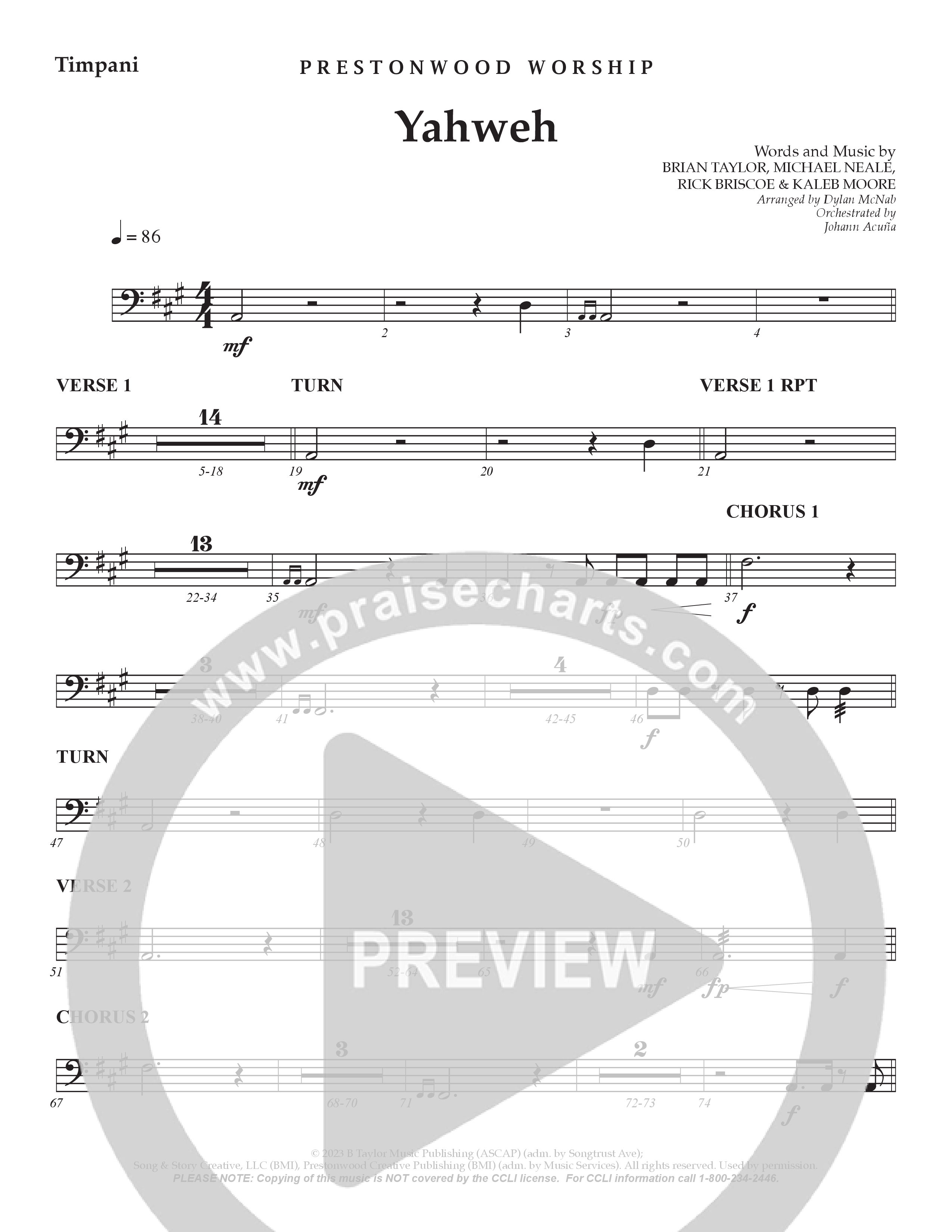 Yahweh Timpani Sheet Music PDF (Prestonwood Worship / Arr. Dylan McNab / Orch. Johann Acuna)