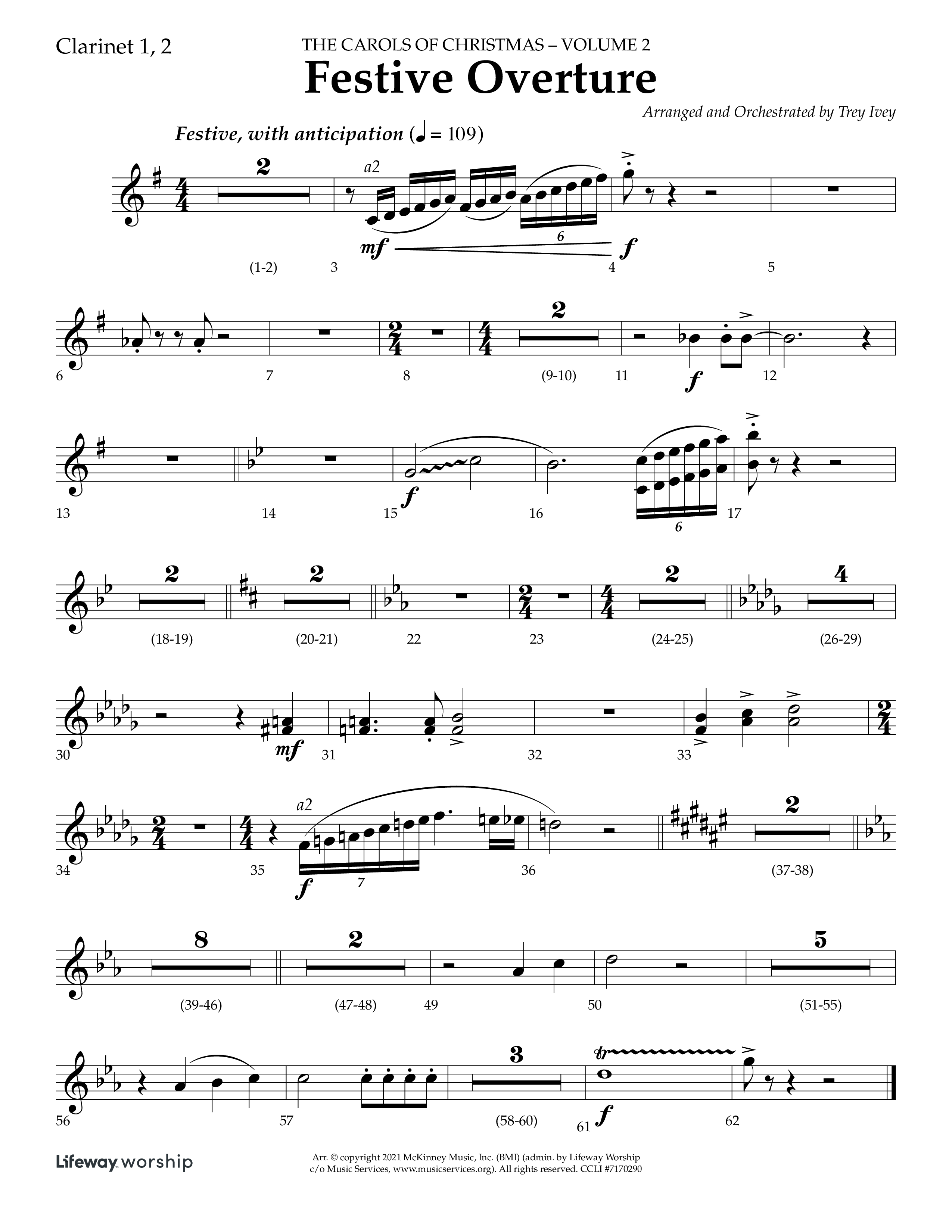 Download the Clarinet sheet music for Festive Overture (Instrumental) by Lifeway Choral / Arr. Trey Ivey, from the album The Carols Of Christmas (Vol. 2). This song was arranged by Trey Ivey in the key of F.