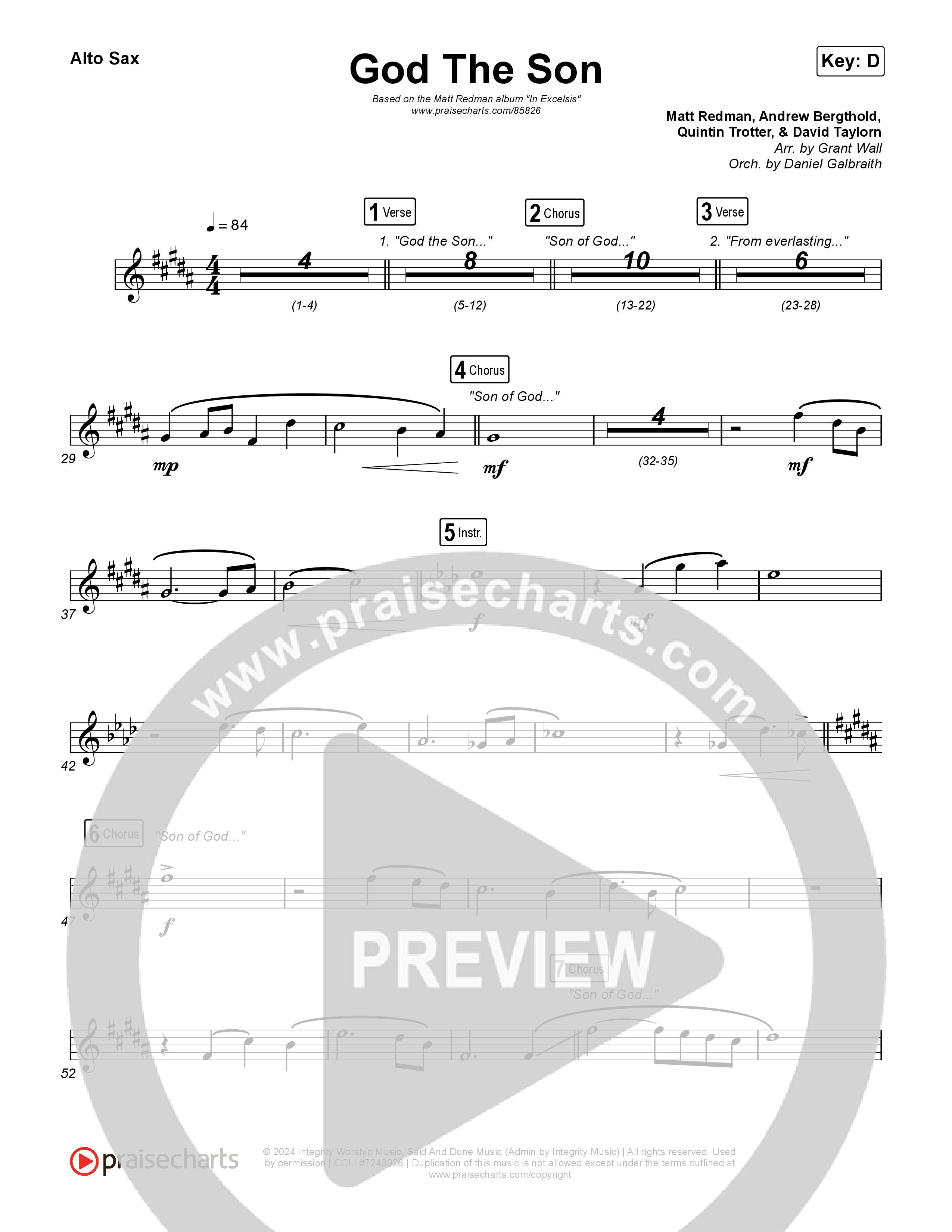 Download the AltoSax sheet music for God The Son by Matt Redman, from the album God The Son. This song was arranged by Grant Wall / Daniel Galbraith in the key of D, Eb.