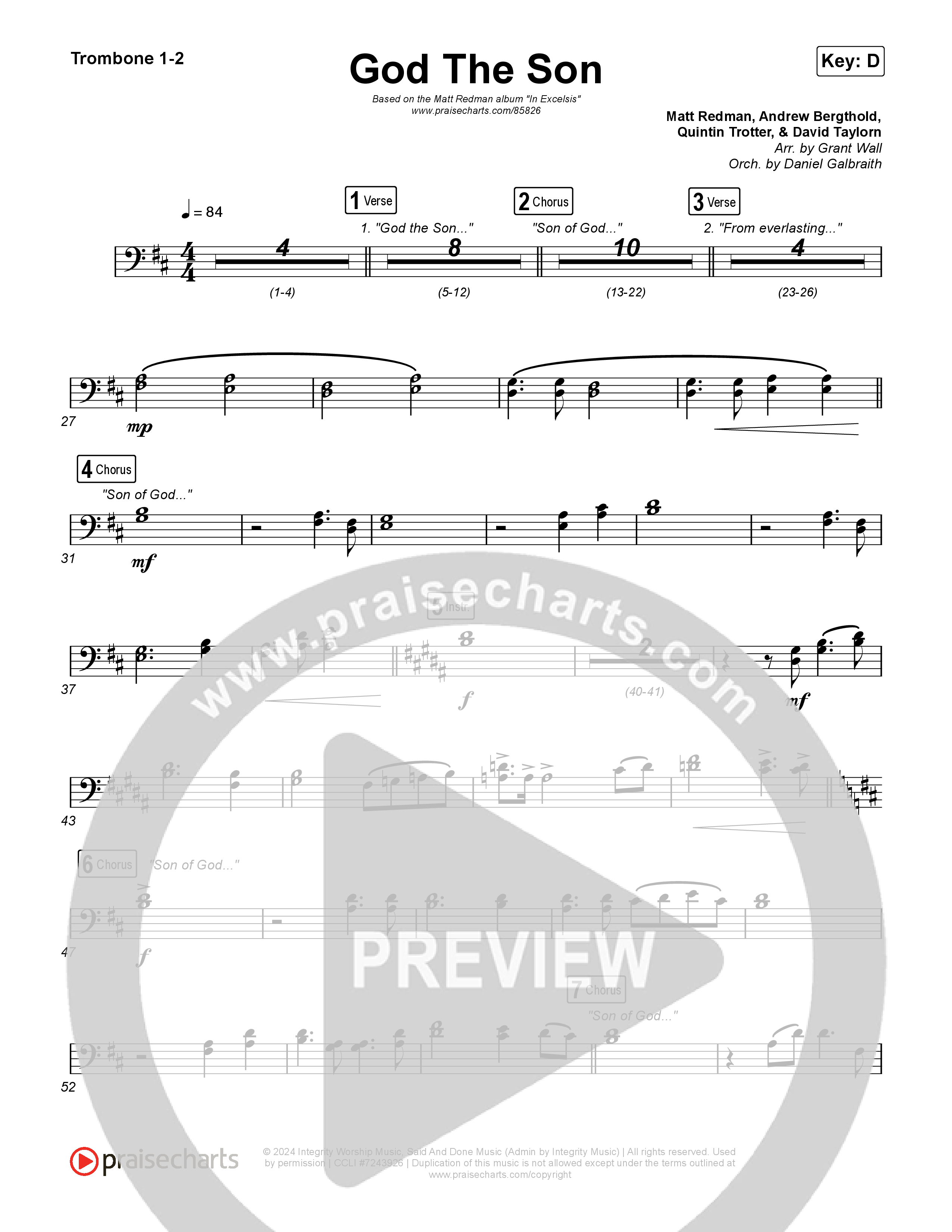 Download the Trombone sheet music for God The Son by Matt Redman, from the album God The Son. This song was arranged by Grant Wall / Daniel Galbraith in the key of D, Eb.