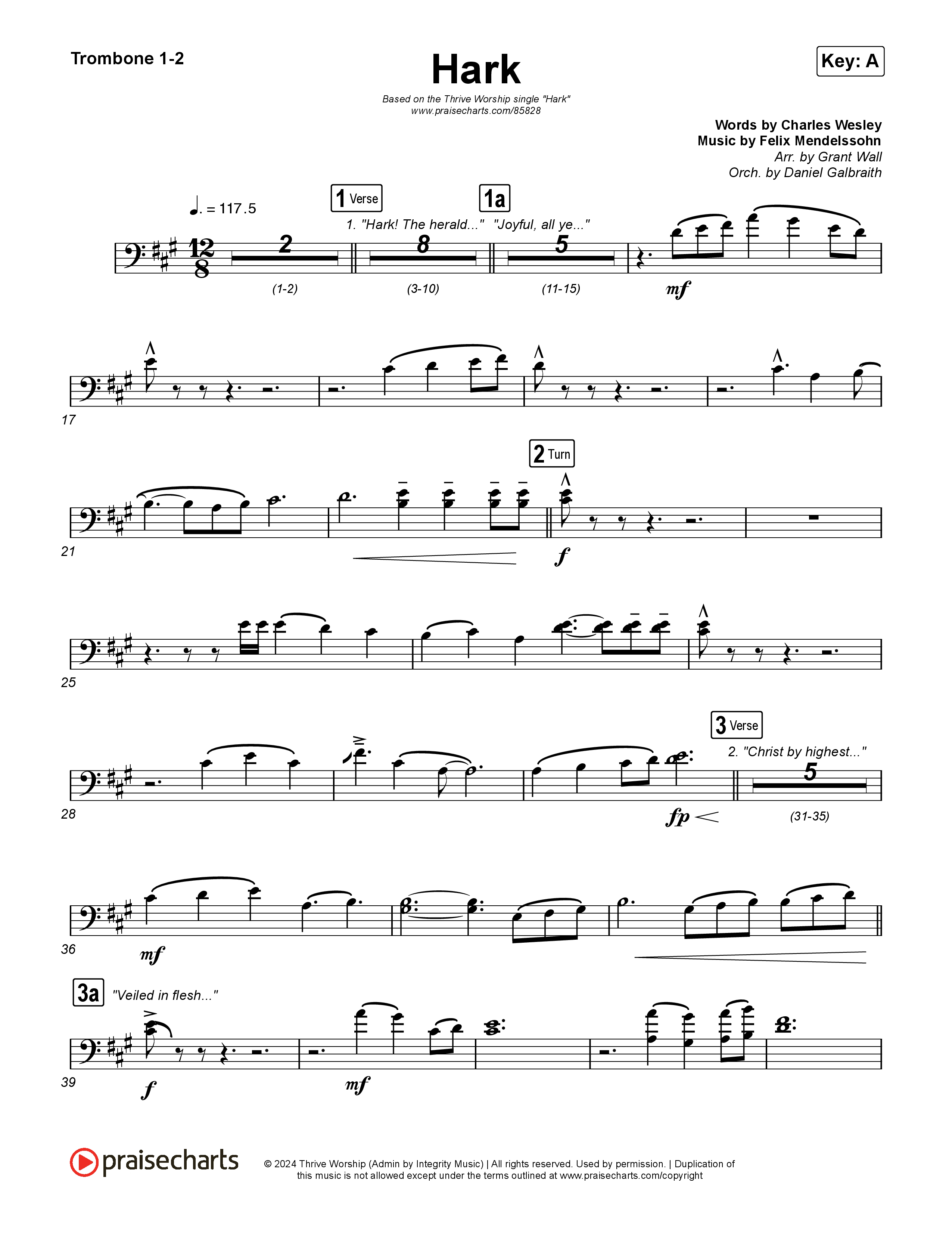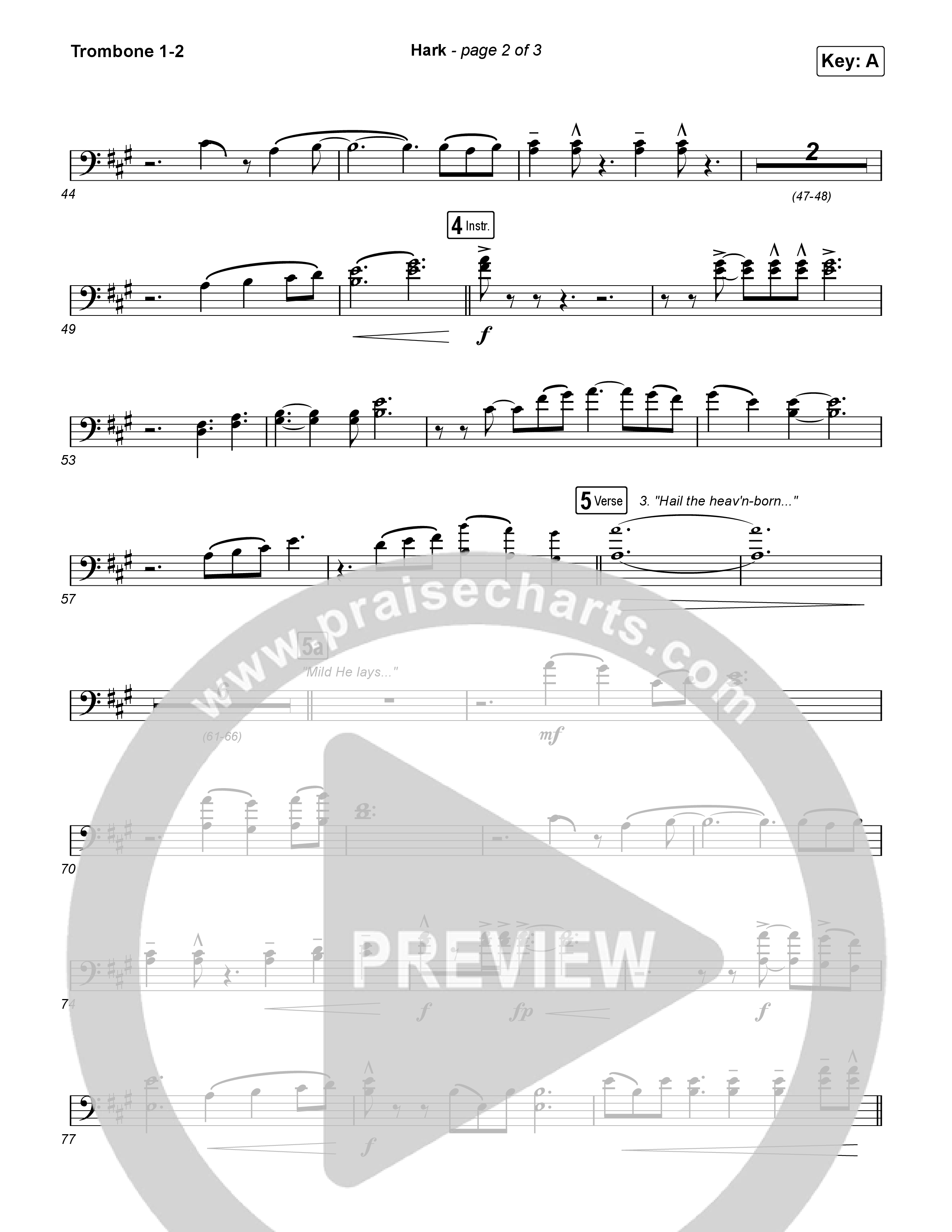 Download the Trombone 1,2 sheet music for Hark by Thrive Worship / Corbin Phillips, from the album Hark. This song was arranged by Grant Wall / Daniel Galbraith in the key of A, Ab.