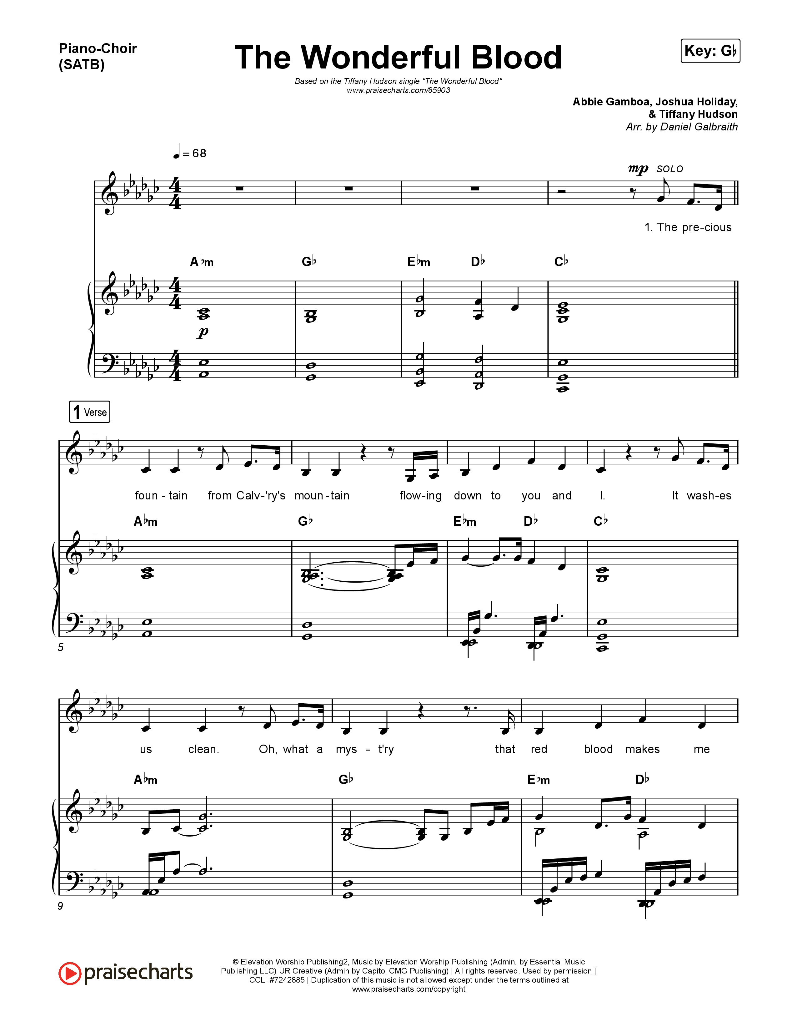 Download the PDF sheet music for The Wonderful Blood by Tiffany Hudson, from the album The Wonderful Blood. This song was arranged by Daniel Galbraith in the key of F, Gb.