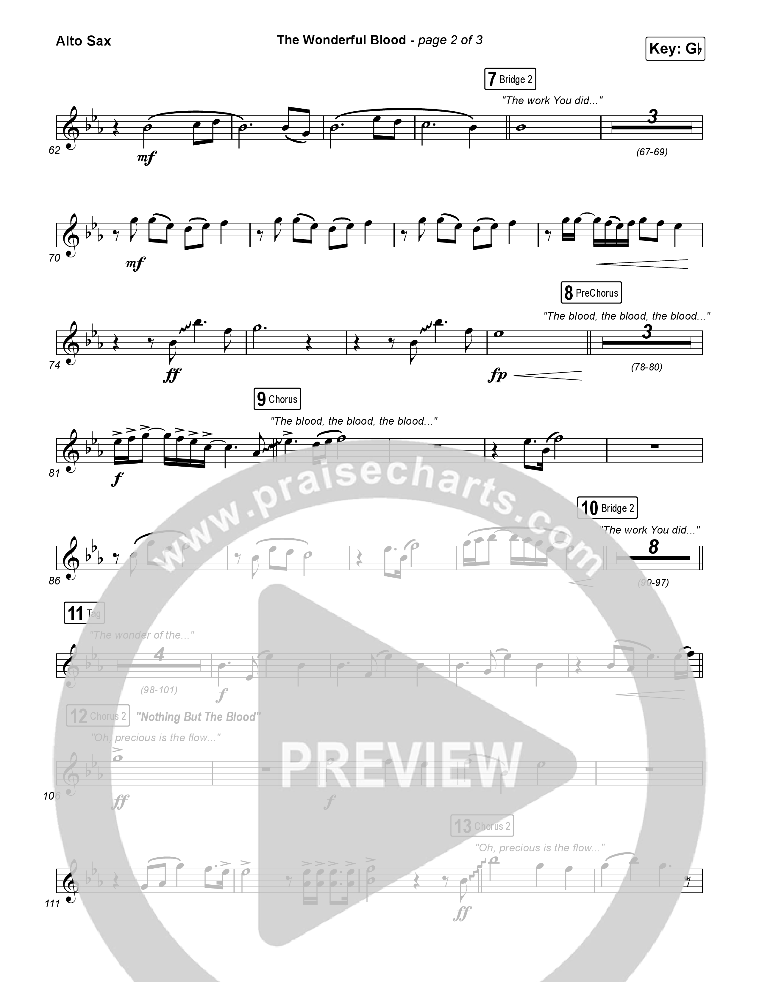 Download the Saxaphone instruments PDF sheet music for The Wonderful Blood by Tiffany Hudson, from the album The Wonderful Blood. This song was arranged by Daniel Galbraith in the key of F, Gb.
