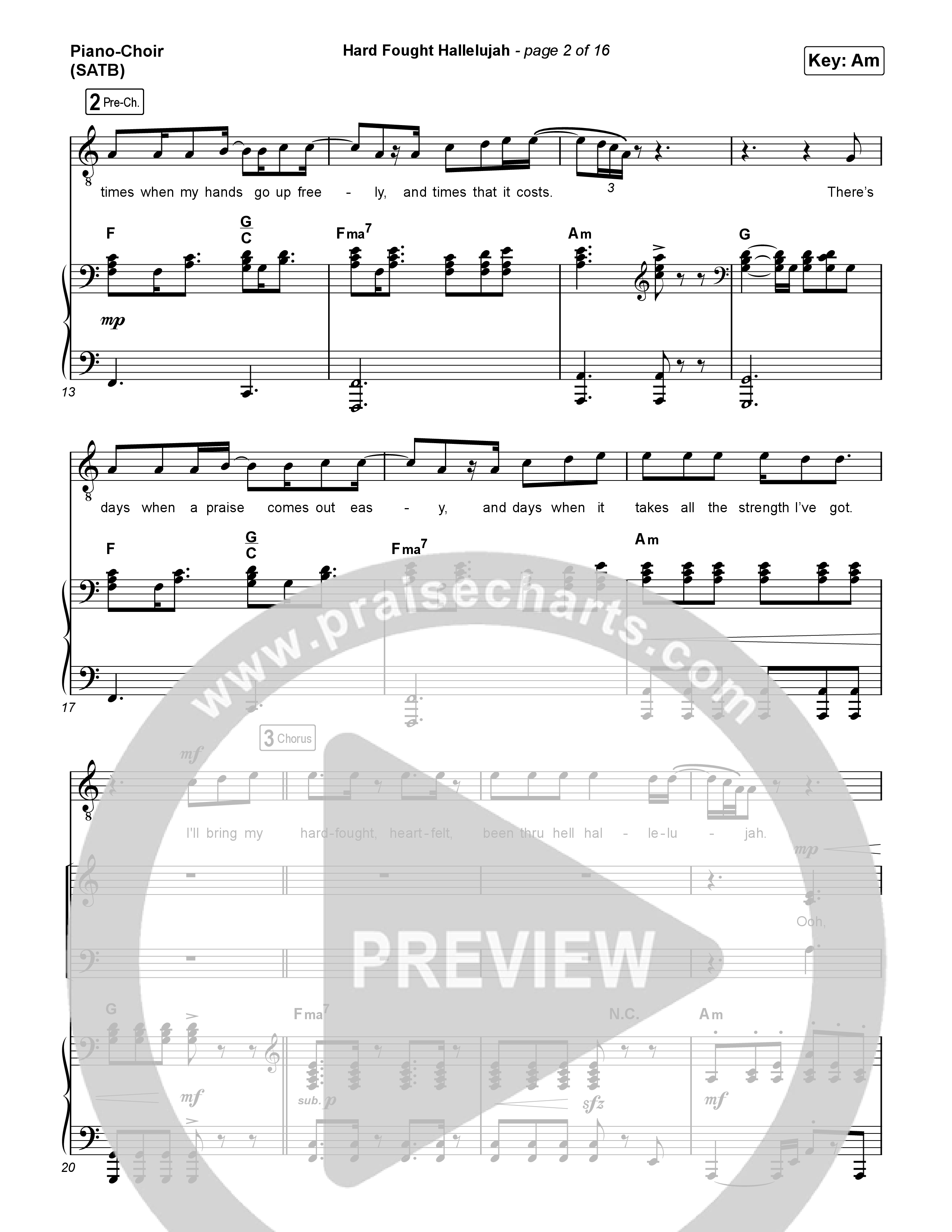 Download the sheet music for Hard Fought Hallelujah by Brandon Lake, from the album Hard Fought Hallelujah. This song was arranged by Grant Wall / Daniel Galbraith in the key of Am, Em, F#m, Gm.