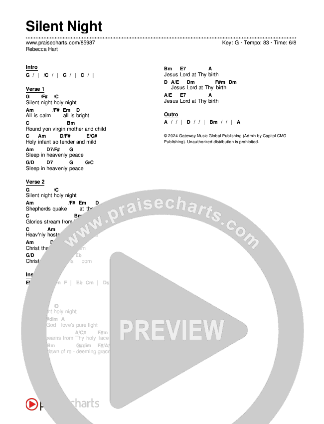 Download the PDF Chord Charts for Silent Night by Rebecca Hart, from the album Emmanuel.