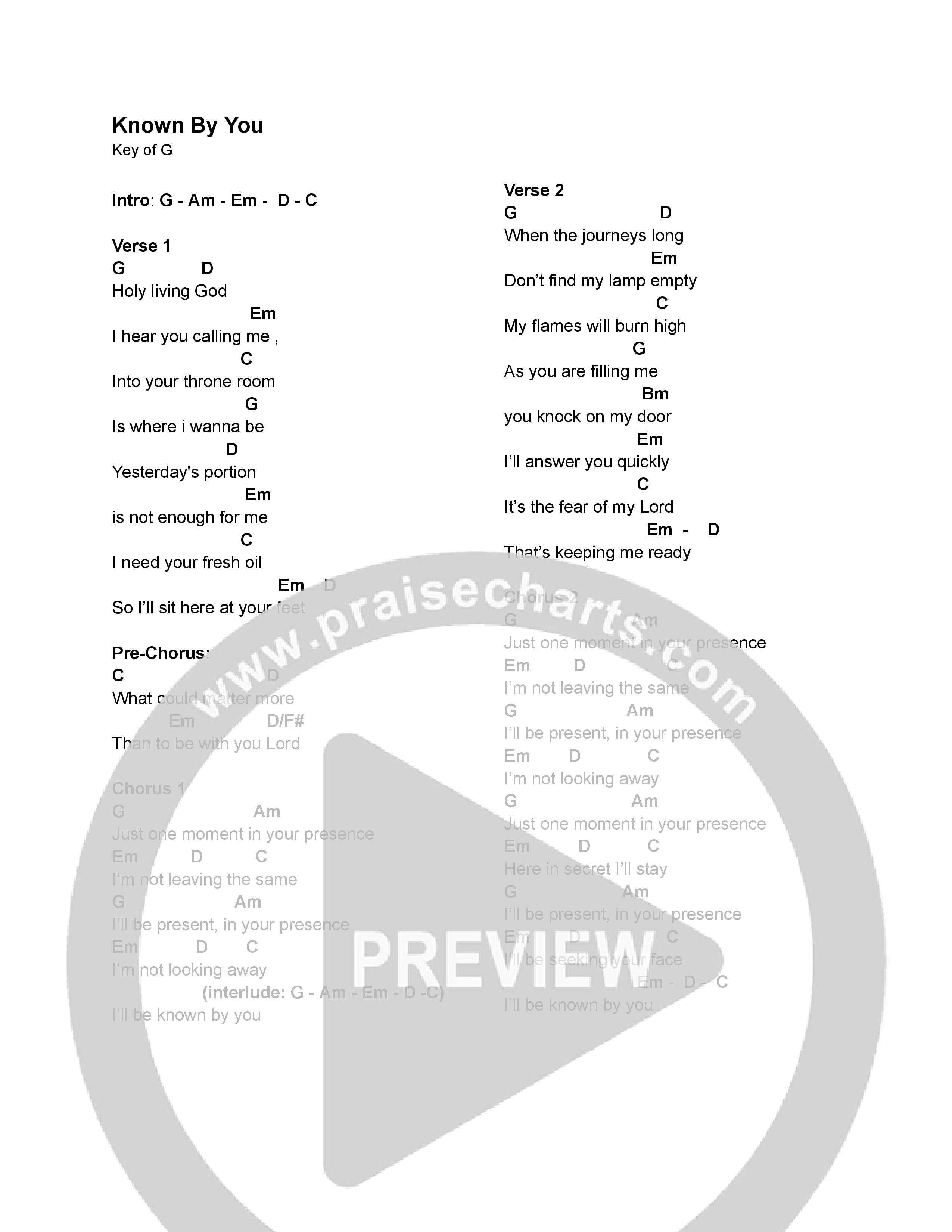Known By You Chords PDF (North Palm Worship)
