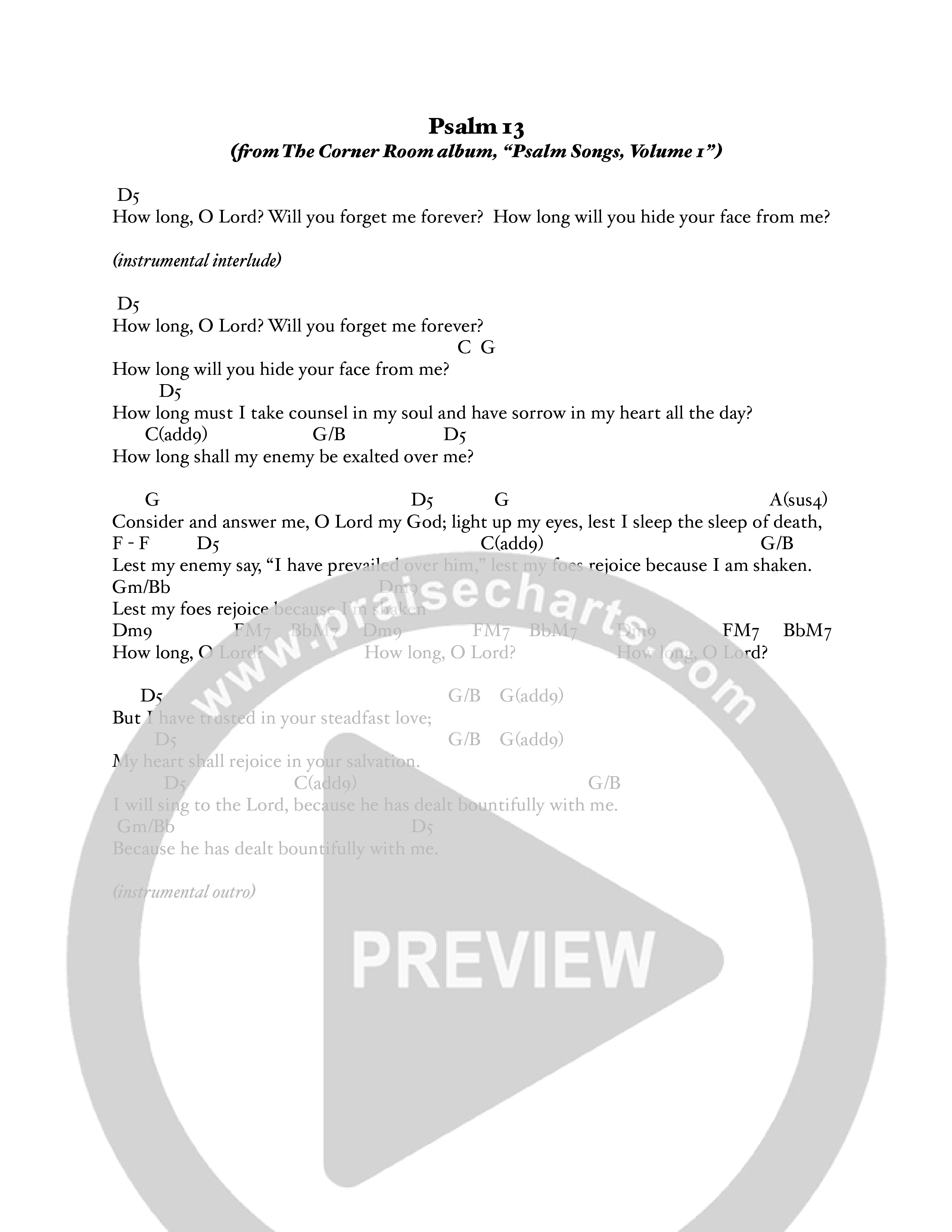 Download the PDF Chord Charts for Psalm 13 by The Corner Room, from the album Psalm Songs Vol 1.