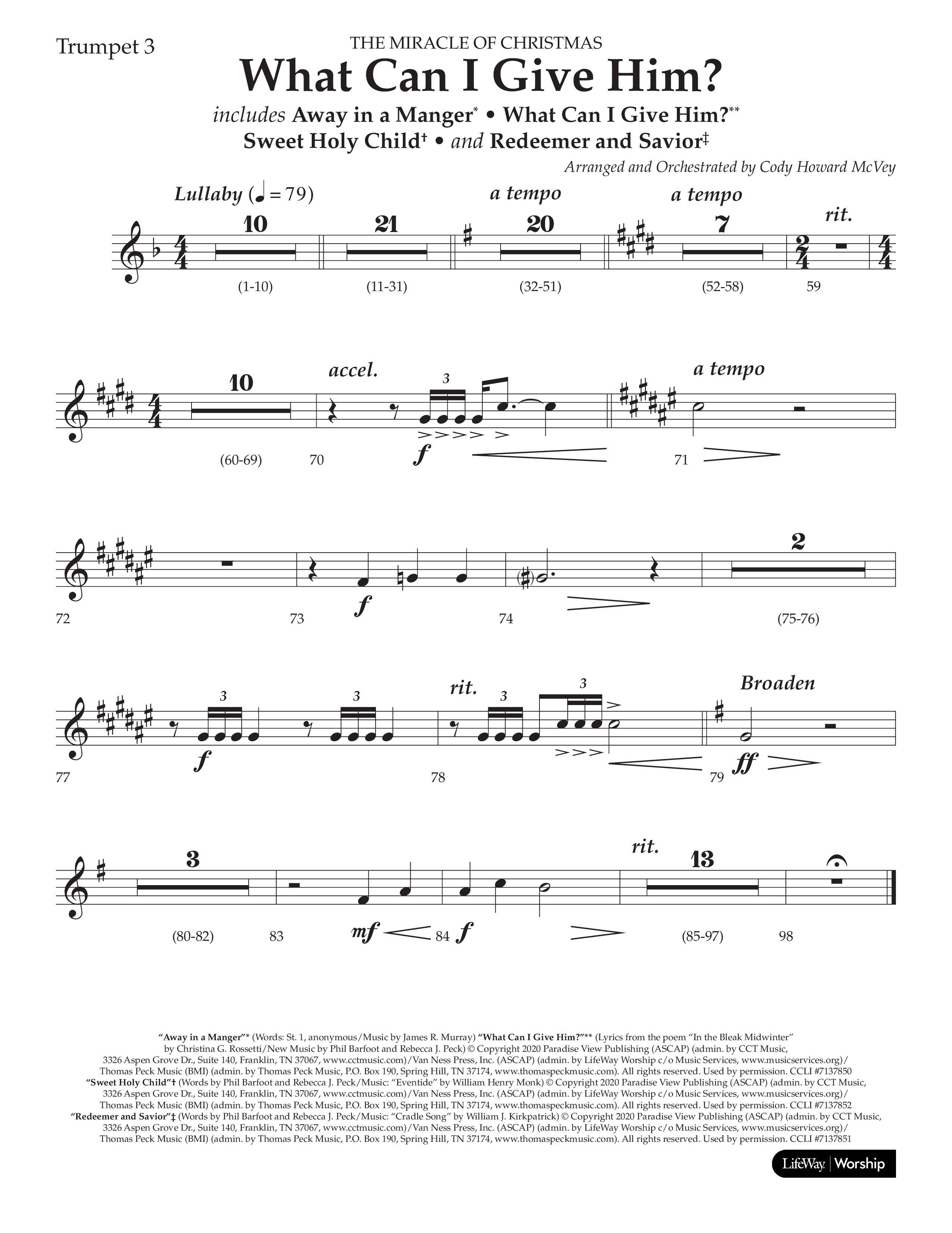 What Can I Give Him (with Away In A Manger, Sweet Holy Child, Redeemer and Savior) (Choral Anthem SATB) Trumpet Sheet Music PDF (Lifeway Choral / Arr. Cody McVey)