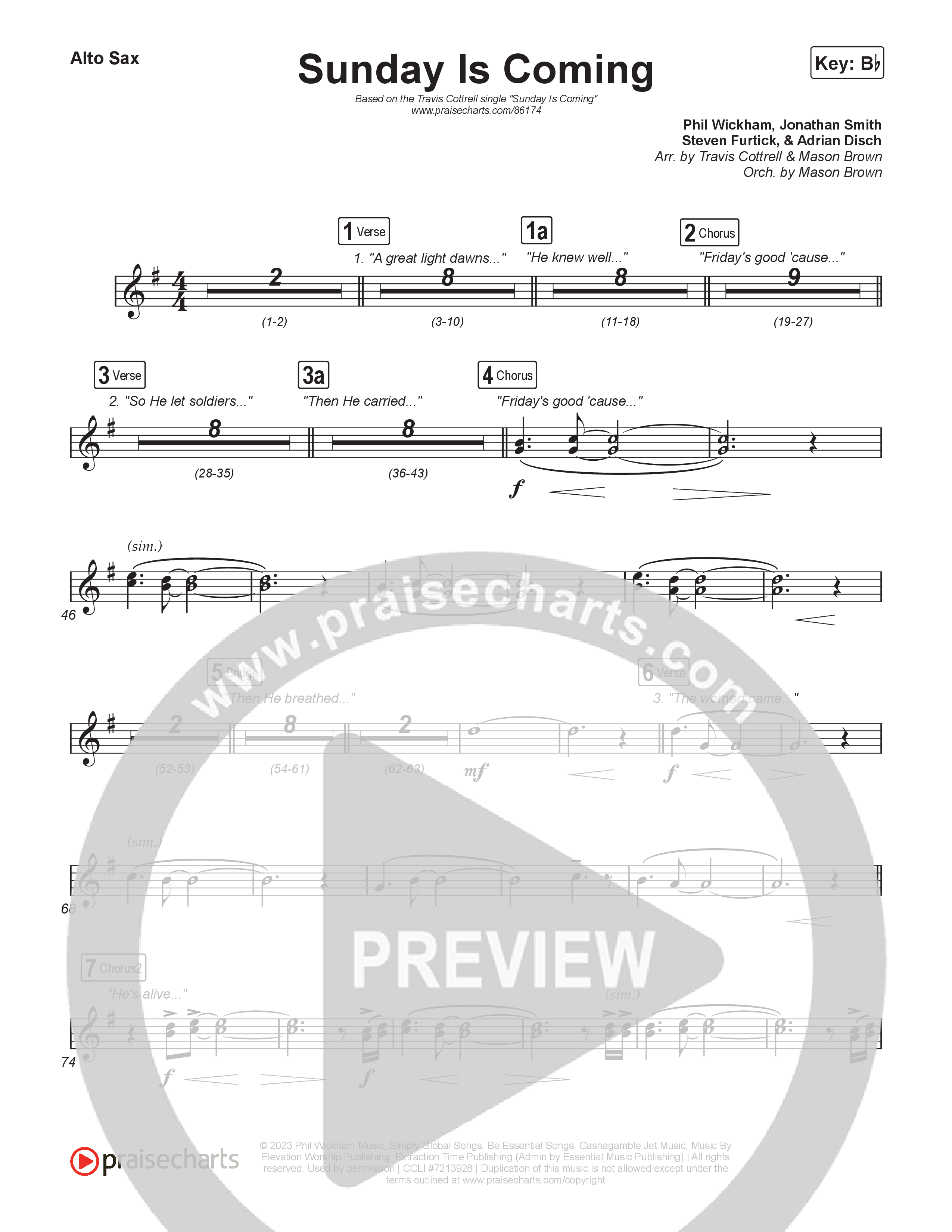 Download the AltoSax sheet music for Sunday Is Coming (Single) Choral/SATB by Travis Cottrell / Arr. Mason Brown, from the album Sunday Is Coming. This song was arranged by Travis Cottrell / Mason Brown in the key of Bb.
