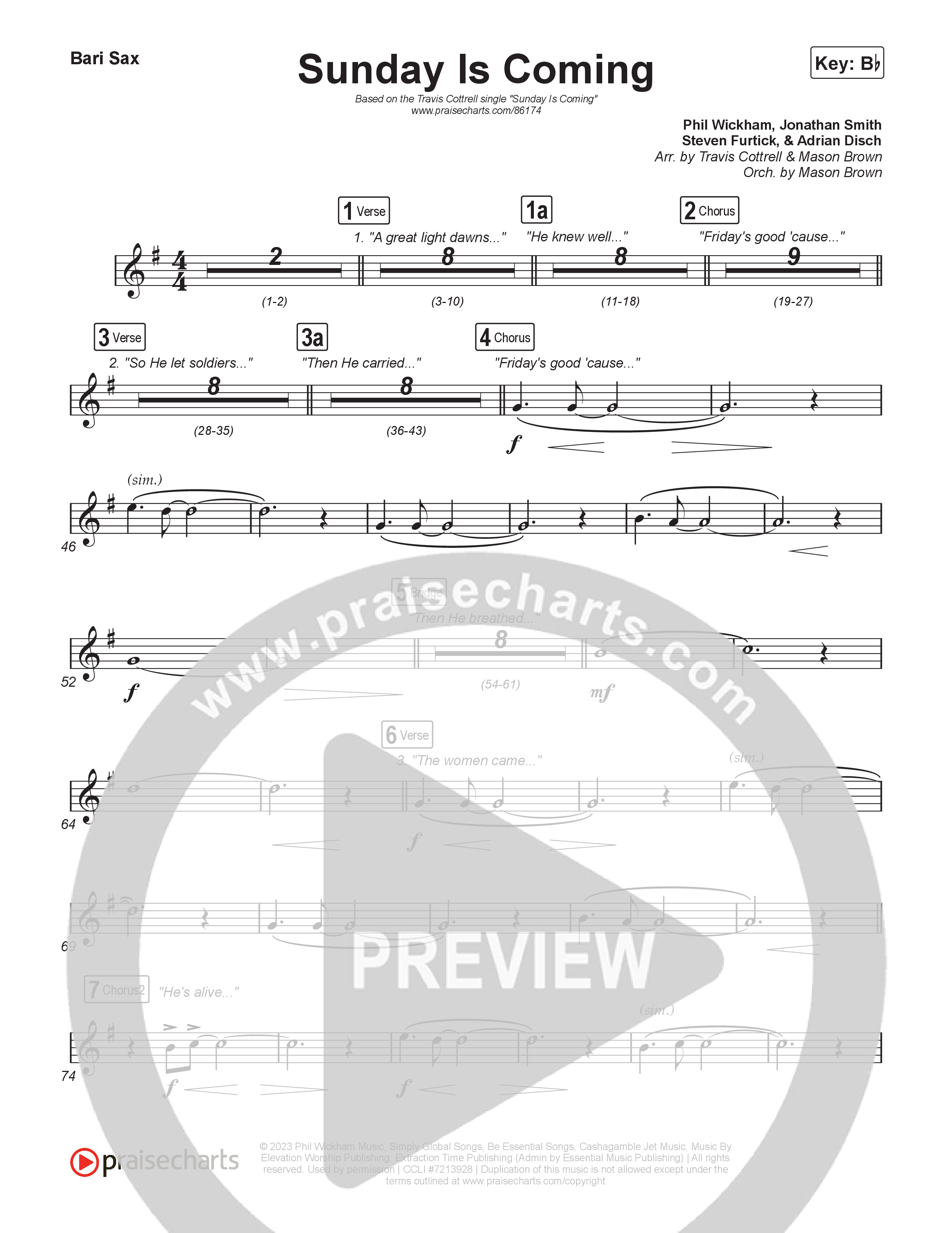 Sunday Is Coming (Single) Choral/SATB Bari Sax Sheet Music PDF (Travis Cottrell / Arr. Mason Brown)