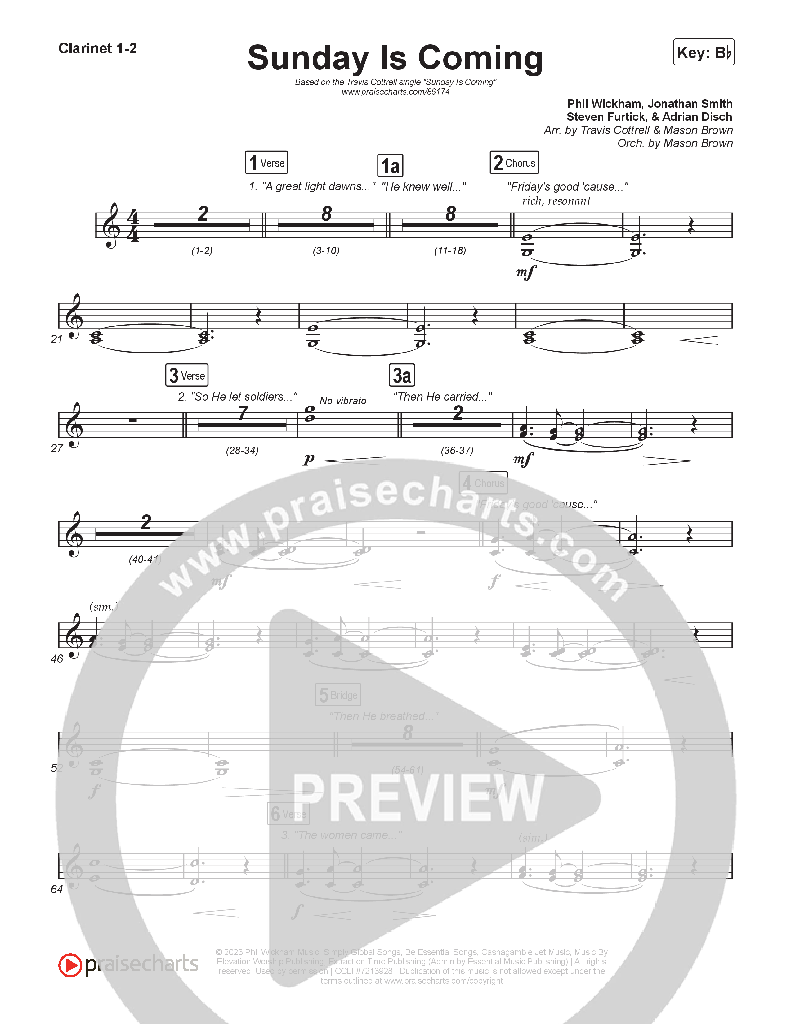 Sunday Is Coming (Single) Choral/SATB Clarinet Sheet Music PDF (Travis Cottrell / Arr. Mason Brown)
