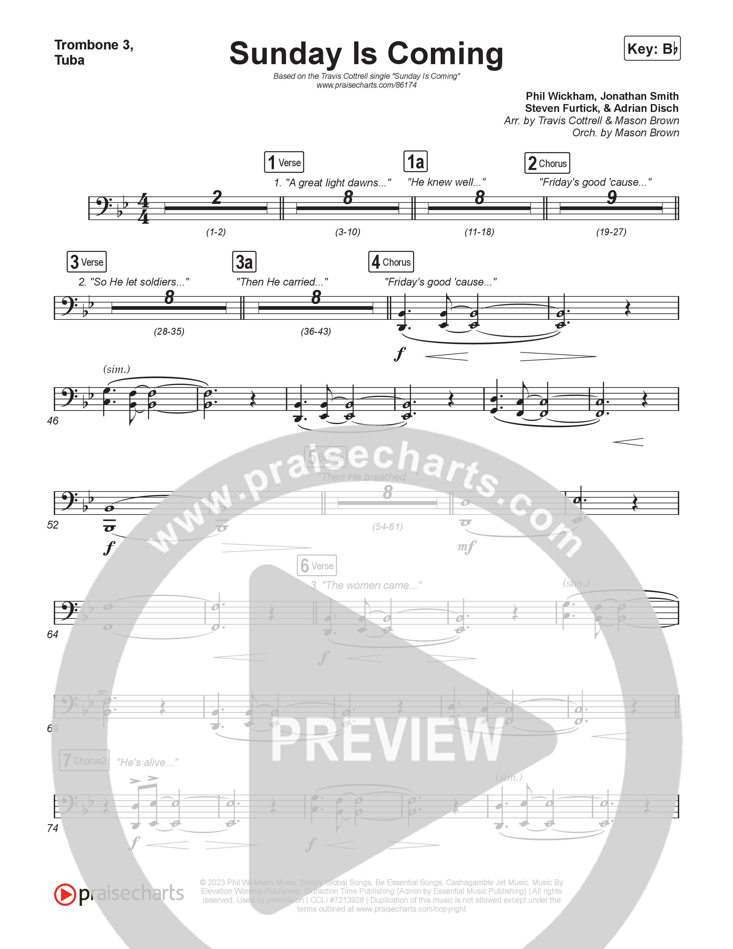 Sunday Is Coming (Single) Choral/SATB Trombone Sheet Music PDF (Travis Cottrell / Arr. Mason Brown)