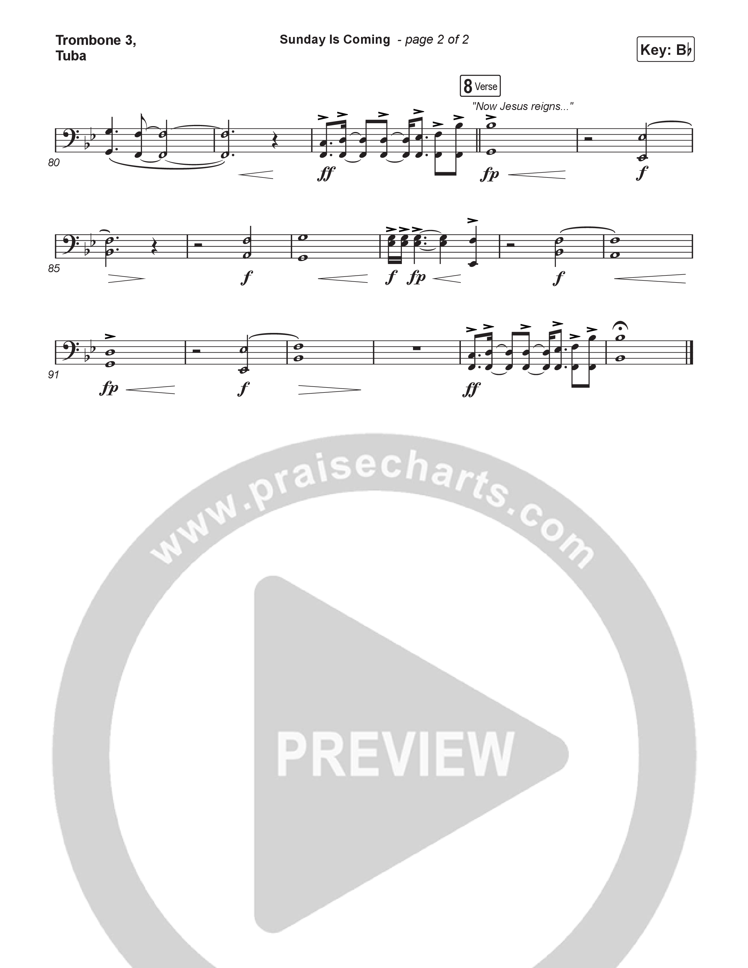 Download the Trombone 3/Tuba sheet music for Sunday Is Coming (Single) Choral/SATB by Travis Cottrell / Arr. Mason Brown, from the album Sunday Is Coming. This song was arranged by Travis Cottrell / Mason Brown in the key of Bb.