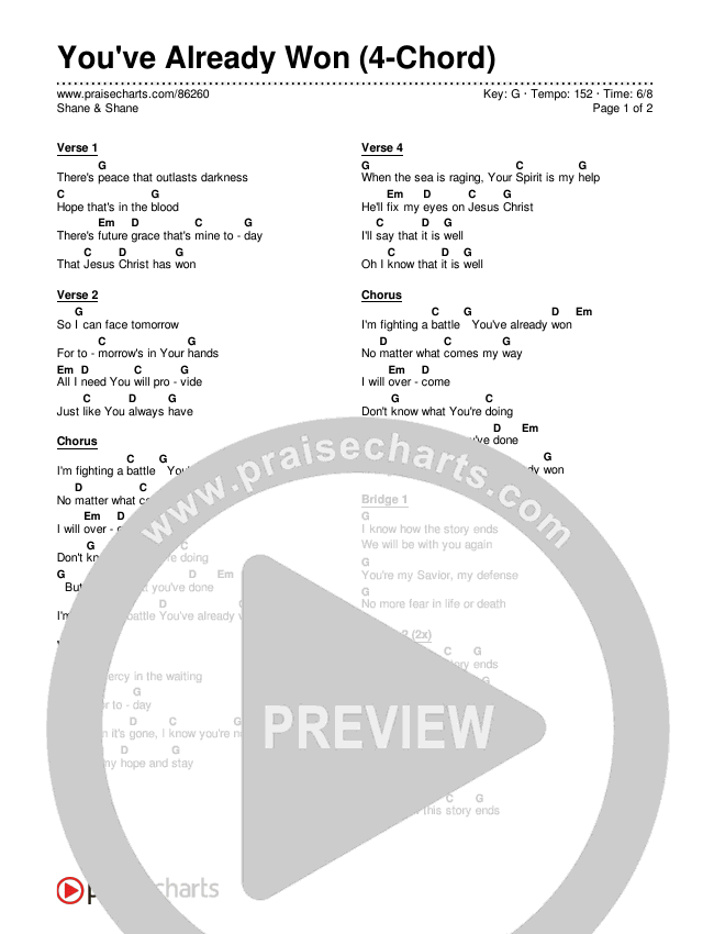 You've Already Won (4-Chord) Chords PDF (Shane & Shane)