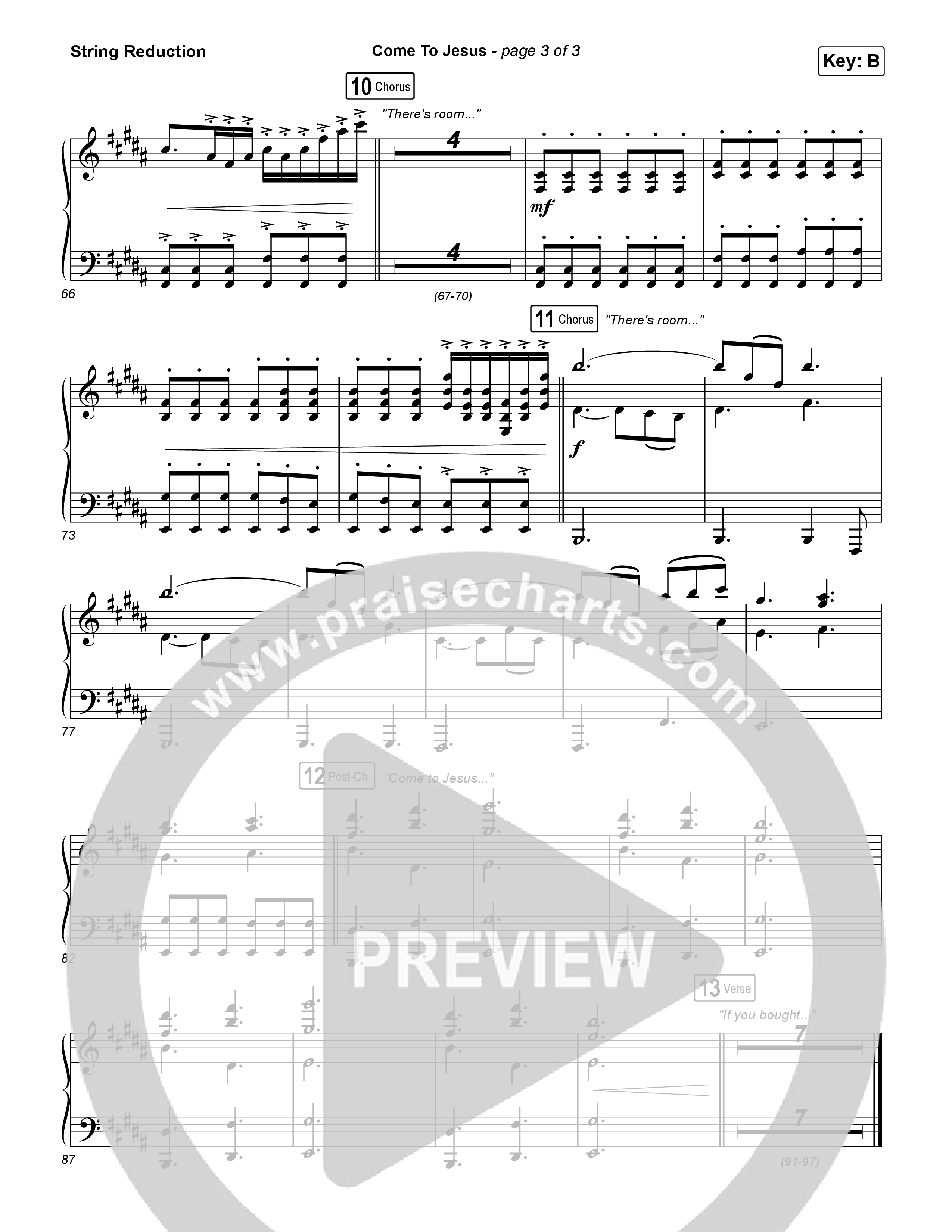 Download the String Reduction sheet music for Come To Jesus by Kristian Stanfill, from the album Come To Jesus. This song was arranged by Grant Wall / Daniel Galbraith in the key of B, Bb.