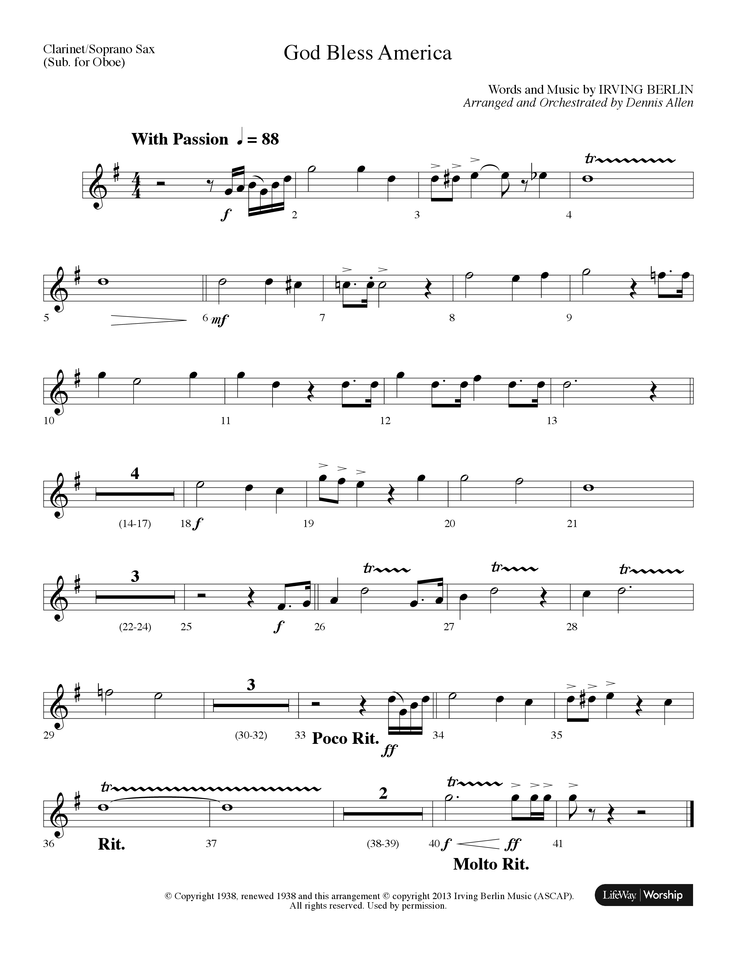 Download the Orchestration for God Bless America (Choral Anthem SATB) by Lifeway Choral / Arr. Dennis Allen, from the album Celebrate America. This song was arranged by Dennis Allen in the key of F.