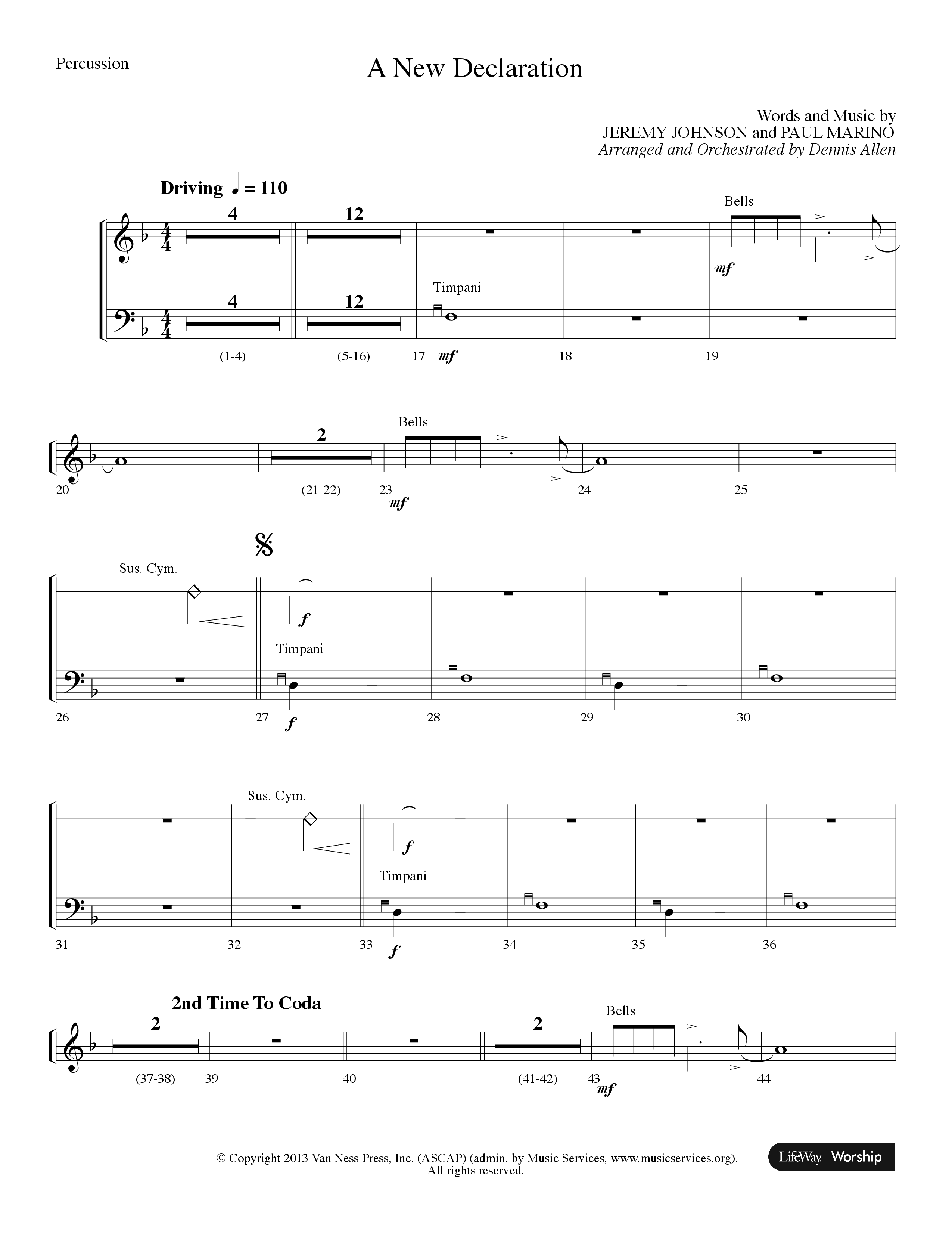 A New Declaration (Choral Anthem SATB) Percussion Sheet Music PDF (Lifeway Choral / Arr. Dennis Allen)