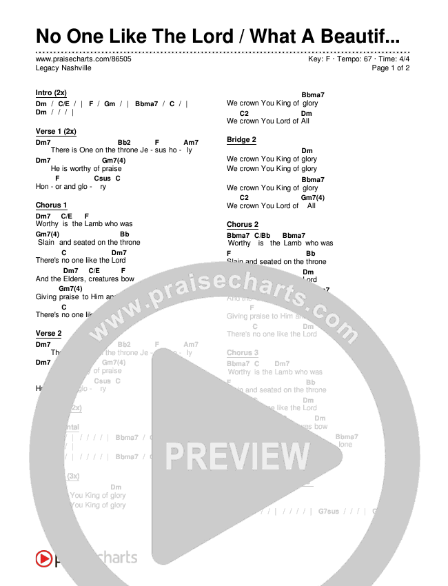 No One Like The Lord / What A Beautiful Name Chords PDF (Legacy Nashville)