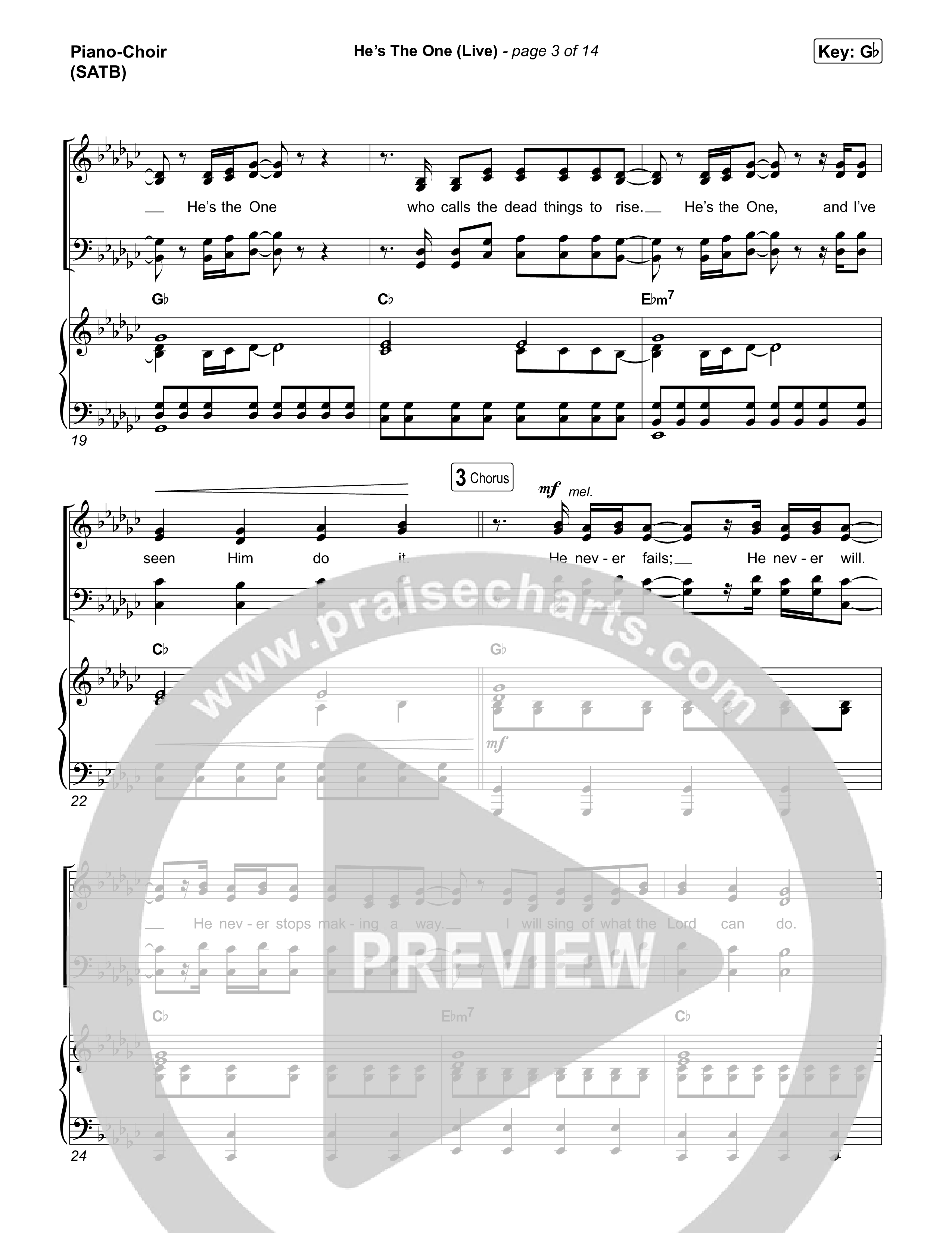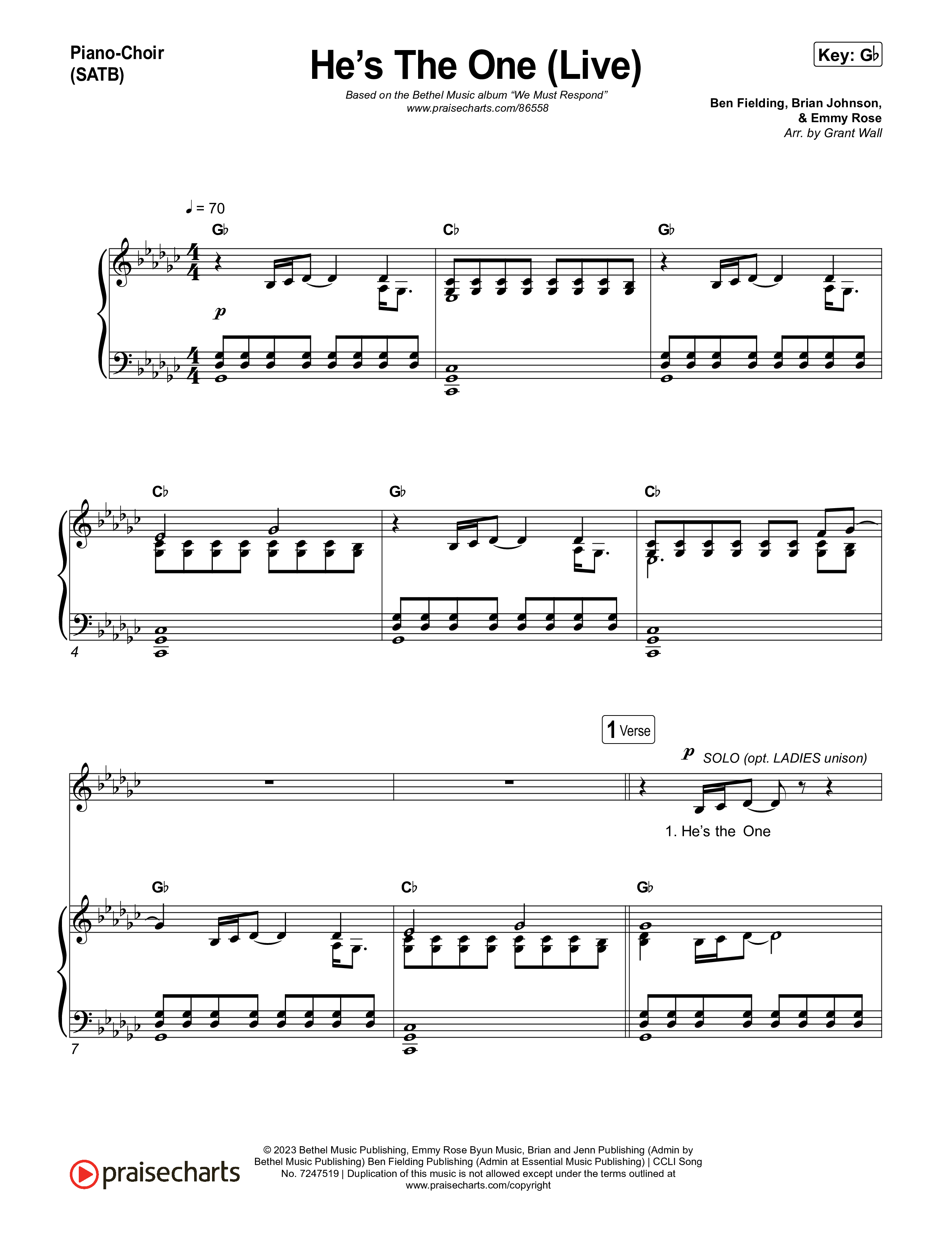 Download the sheet music for He's The One (Live) by Bethel Music, from the album We Must Respond. This song was arranged by Grant Wall in the key of F, G, Gb.
