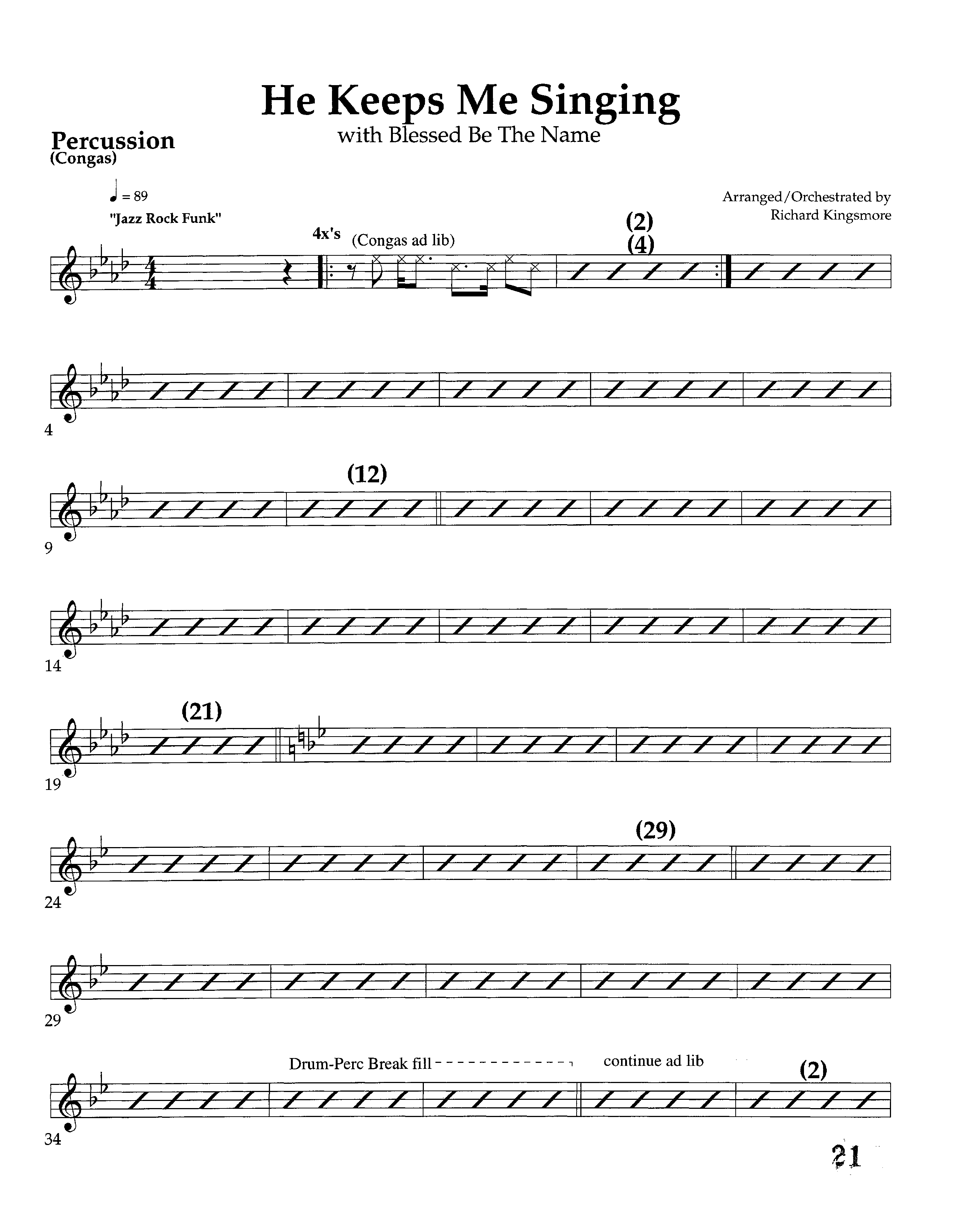 Download the percussion sheet music for He Keeps Me Singing (Instrumental) by Lifeway Choral / Lifeway Worship / Arr. Richard Kingsmore, from the album Power Praise For Worship Band. This song was arranged by Richard Kingsmore in the key of Ab.