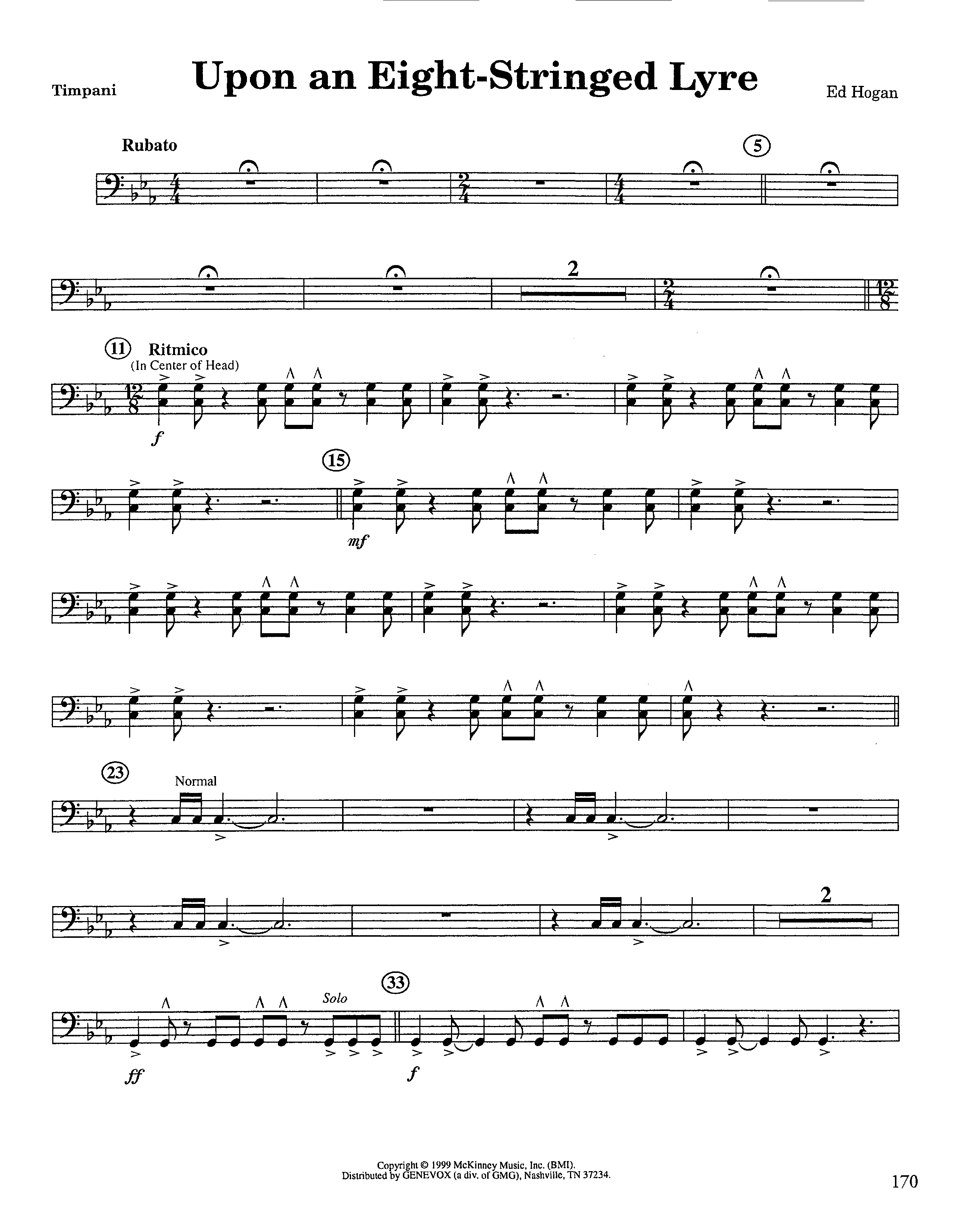 Download the Timpani sheet music for Upon An Eight-Stringed Lyre (Instrumental) by Lifeway Worship / Arr. Ed Hogan, from the album Genevox Sacred Concert Band Series. This song was arranged by Ed Hogan in the key of Eb.
