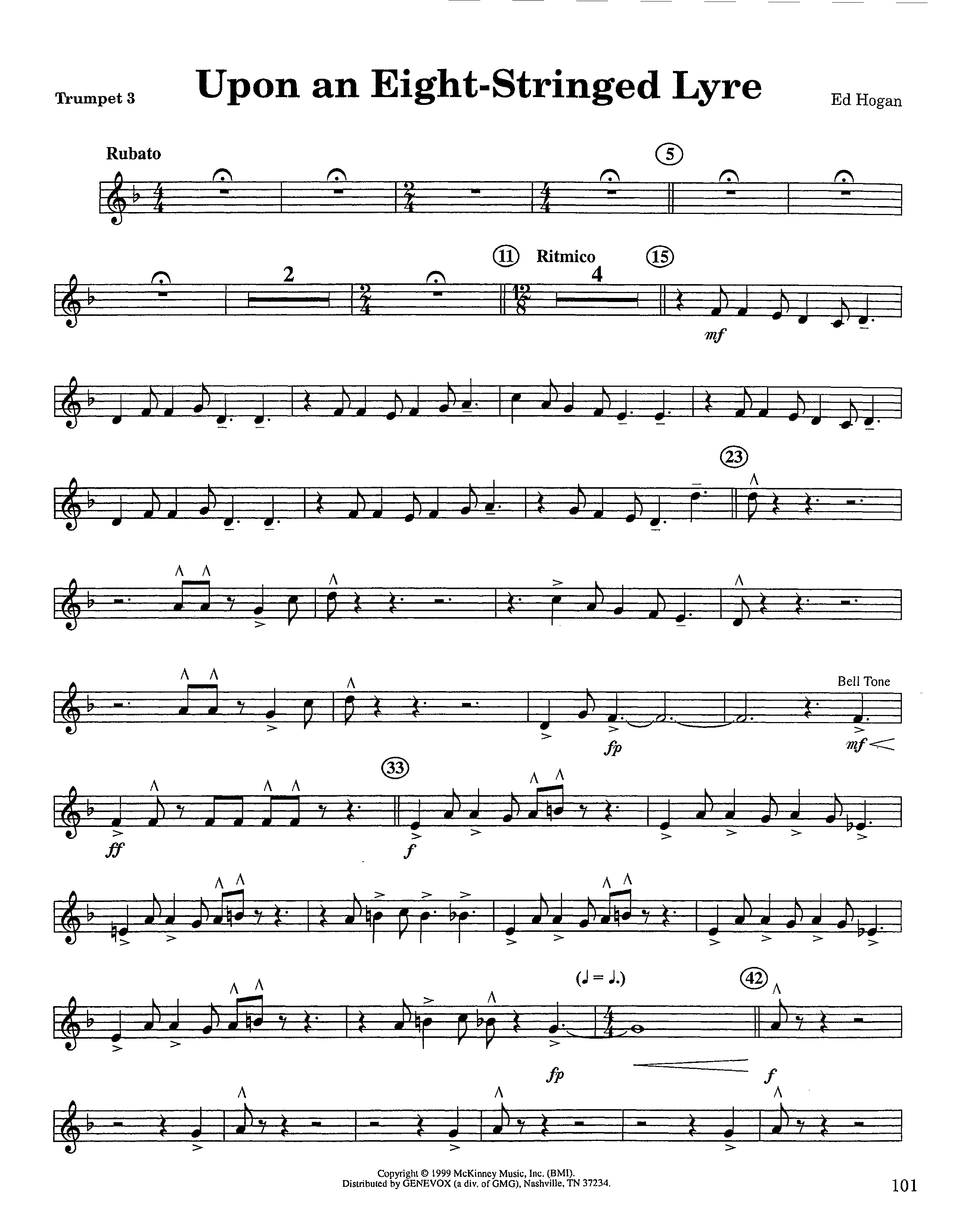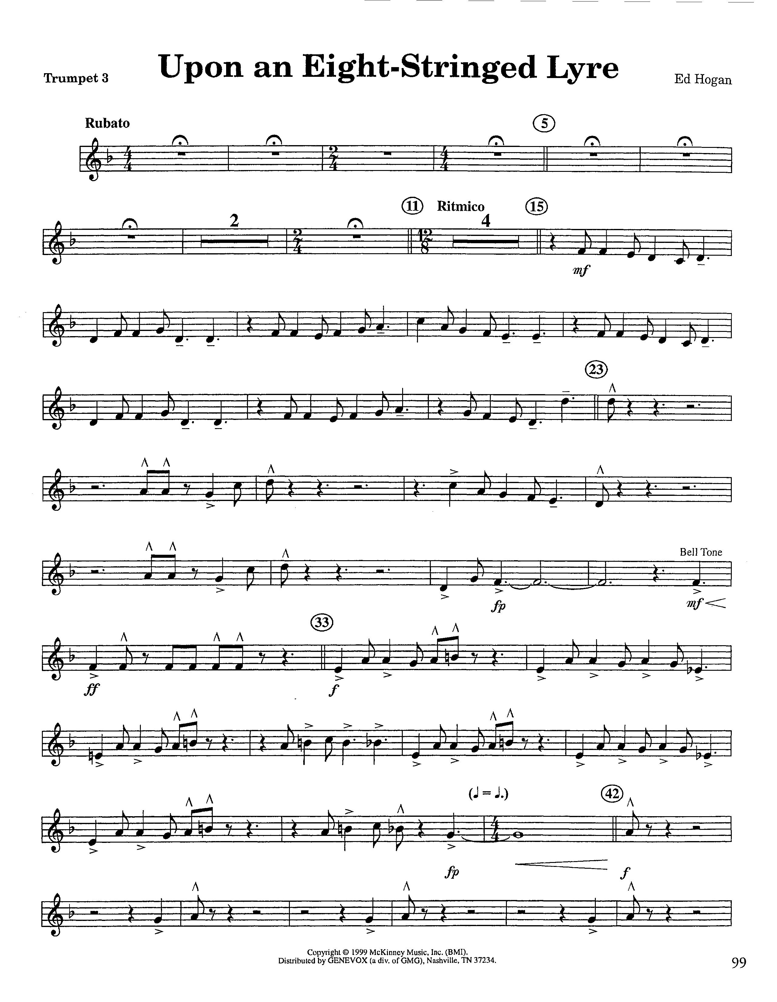 Download the Trumpet 3 sheet music for Upon An Eight-Stringed Lyre (Instrumental) by Lifeway Worship / Arr. Ed Hogan, from the album Genevox Sacred Concert Band Series. This song was arranged by Ed Hogan in the key of Eb.