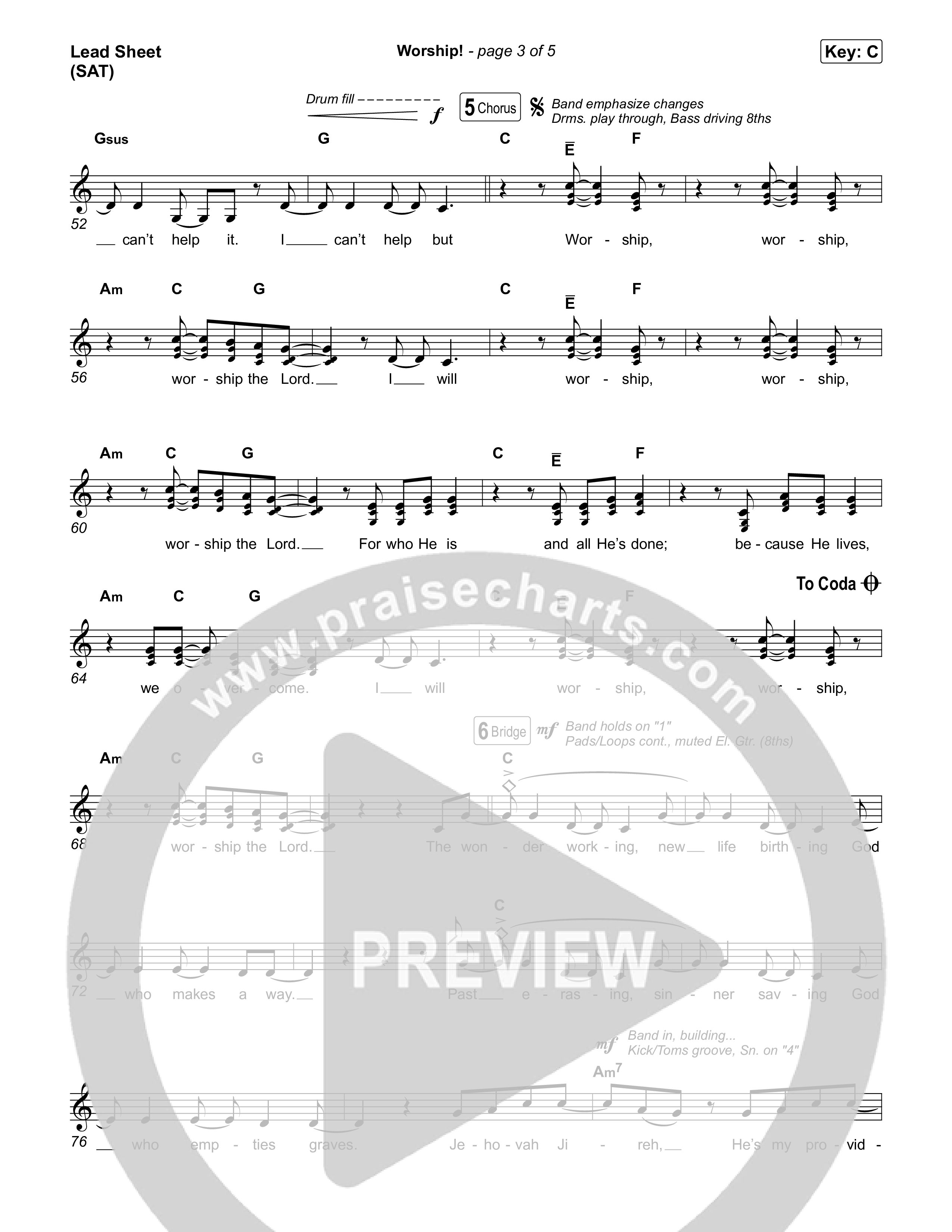 Download the sheet music for Worship! by TAYA, from the album The Reminder. This song was arranged by Grant Wall / Daniel Galbraith in the key of Bb, C.