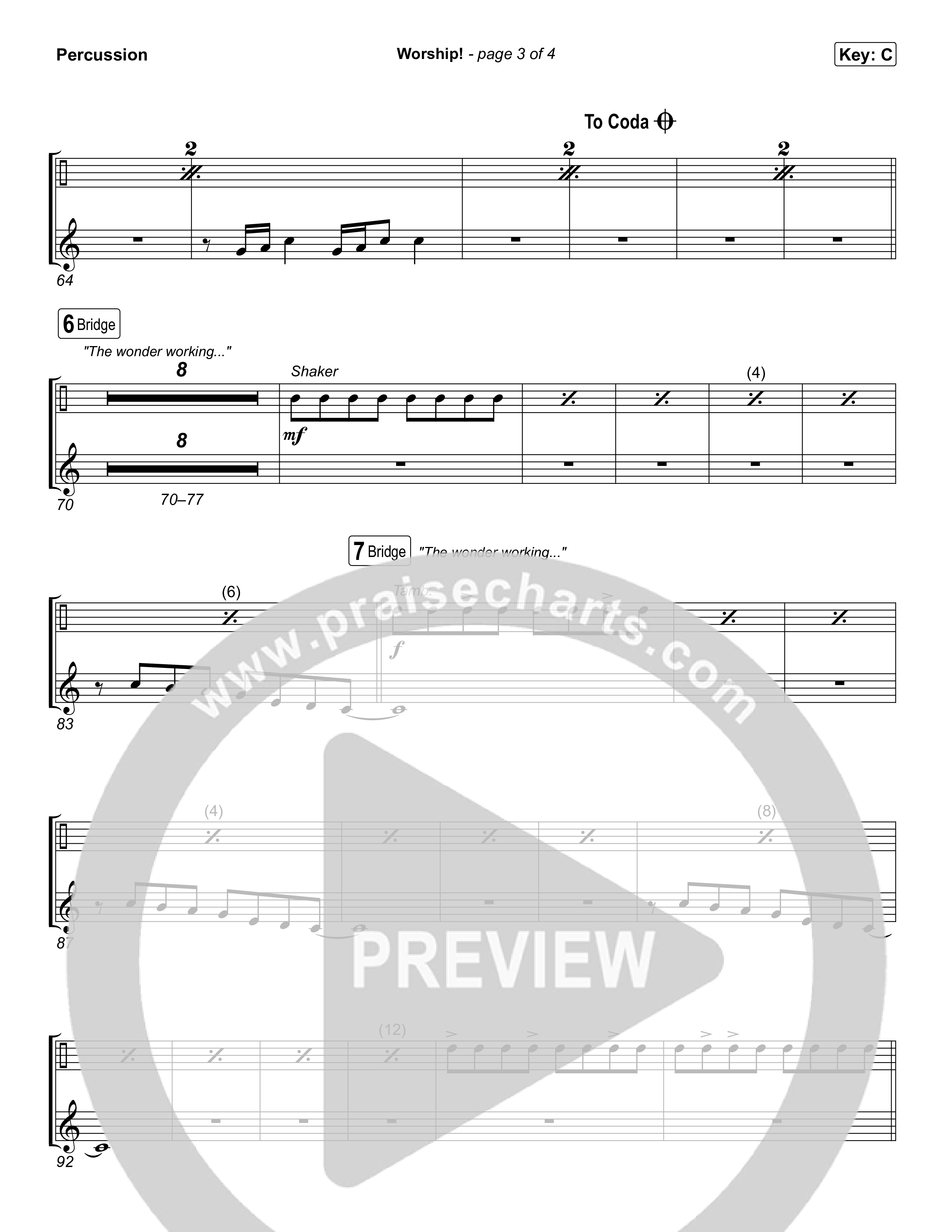Download the percussion sheet music for Worship! by TAYA, from the album The Reminder. This song was arranged by Grant Wall / Daniel Galbraith in the key of Bb, C.