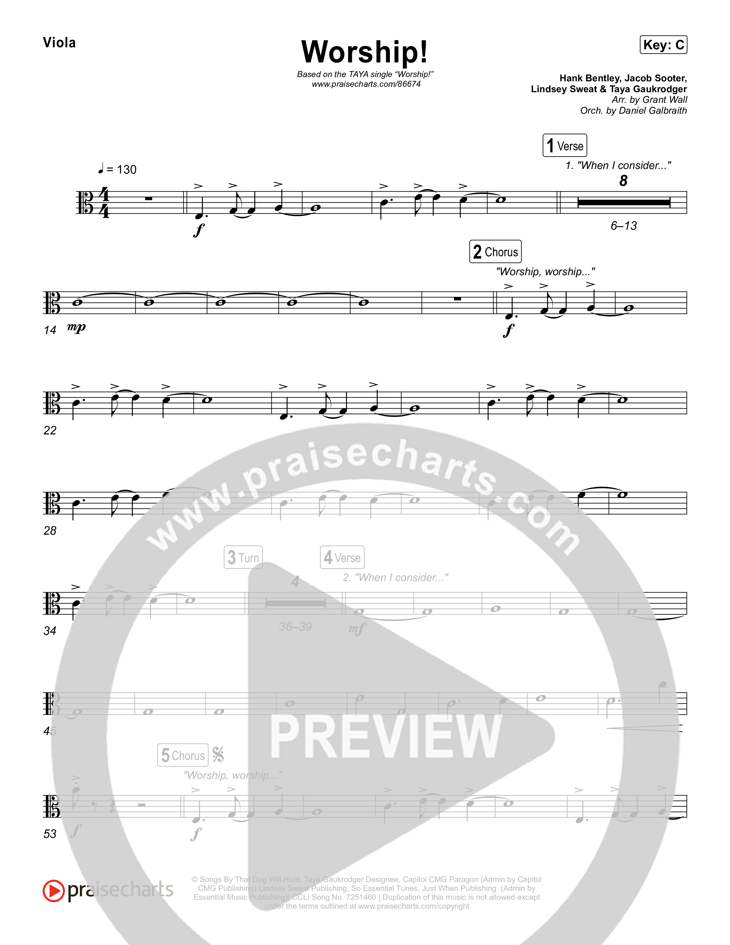 Download the Viola sheet music for Worship! by TAYA, from the album The Reminder. This song was arranged by Grant Wall / Daniel Galbraith in the key of Bb, C.