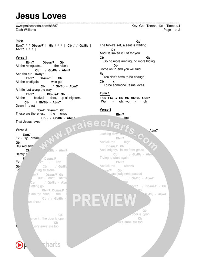 Jesus Loves Chords PDF (Zach Williams)