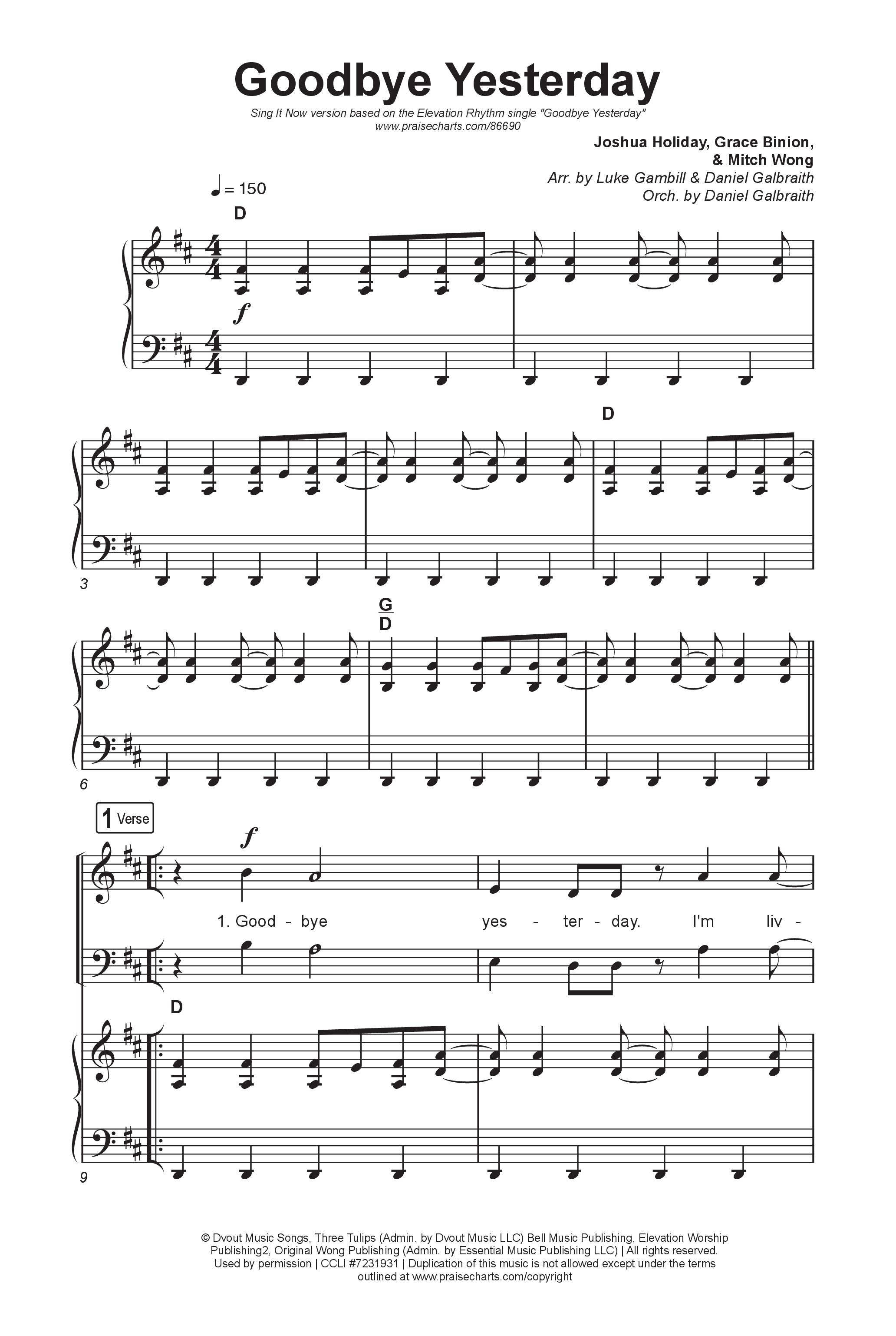 Goodbye Yesterday (Sing It Now) Octavo Sheet Music PDF (ELEVATION RHYTHM / Arr. Luke Gambill)