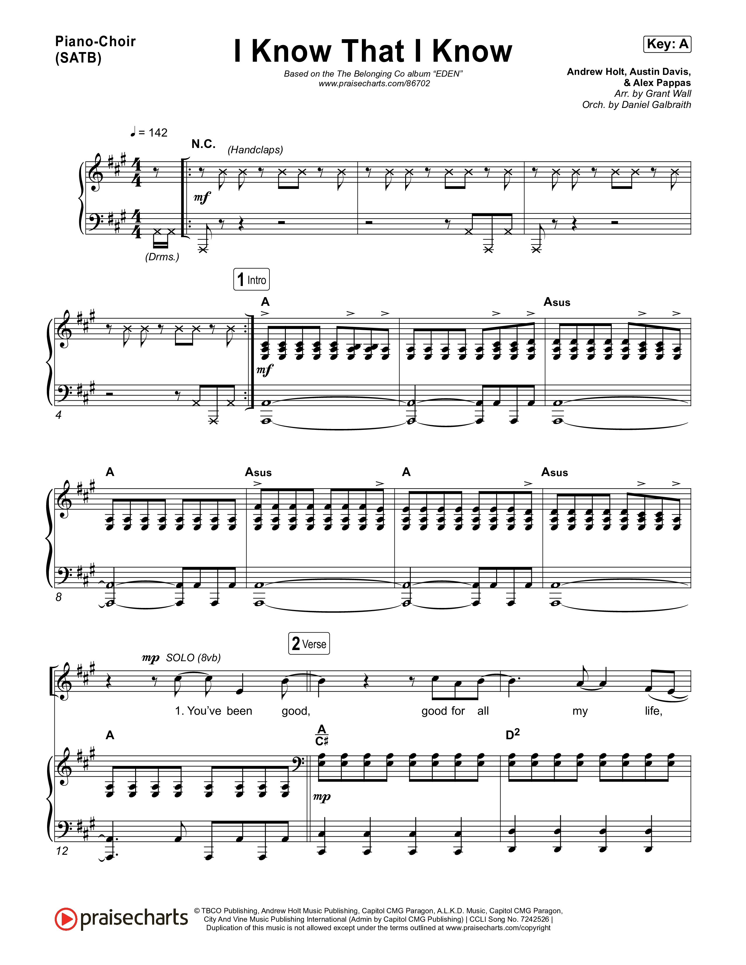Download the PDF sheet music for I Know That I Know by The Belonging Co / David Dennis, from the album EDEN. This song was arranged by Grant Wall / Daniel Galbraith in the key of A, Ab, G.