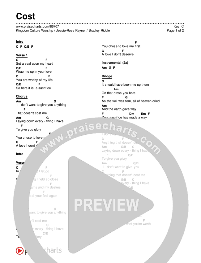 Cost Chords PDF (Kingdom Culture Worship / Jessie-Rose Rayner / Bradley Riddle)