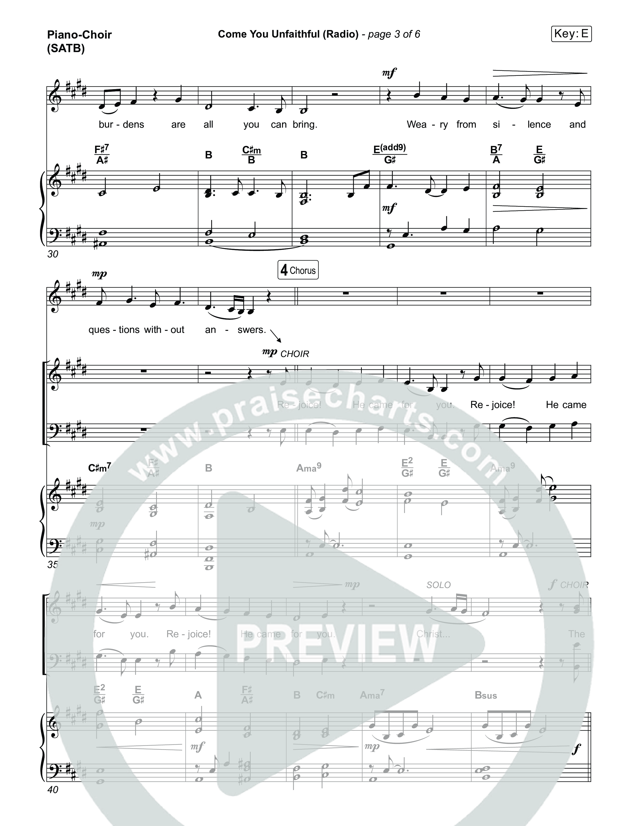 Download the PDF sheet music for Come You Unfaithful (Choral Anthem SATB) by Michael Boggs / Arr. Luke Gambill, from the album Come You Unfaithful (Radio). This song was arranged by Luke Gambill / Daniel Galbraith in the key of E.