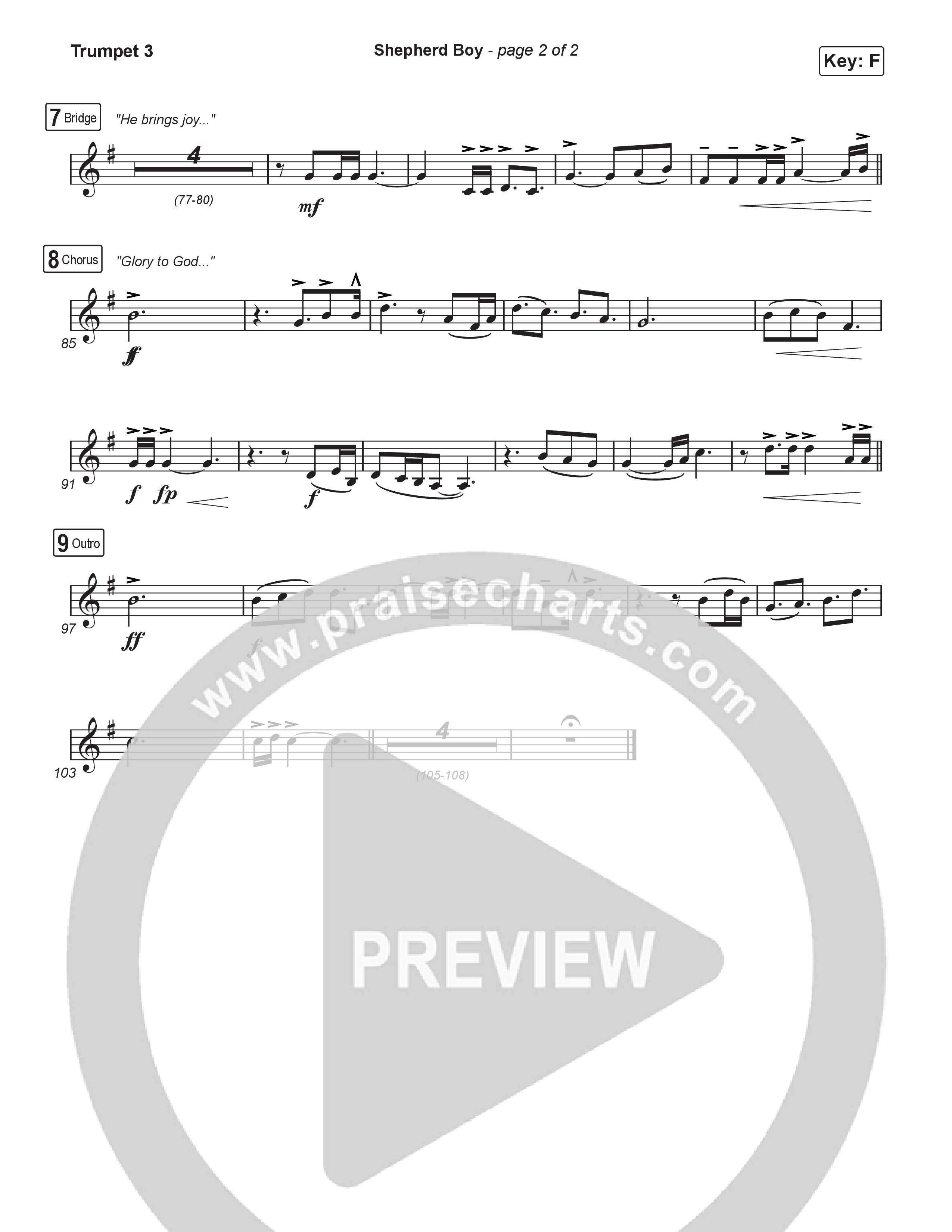 Download the Trumpet 3 sheet music for Shepherd Boy (Unison/2-Part) by Phil Wickham / Arr. Luke Gambill, from the album Hallelujah! It's Christmas!. This song was arranged by Luke Gambill / Daniel Galbraith / Grant Wall in the key of F.