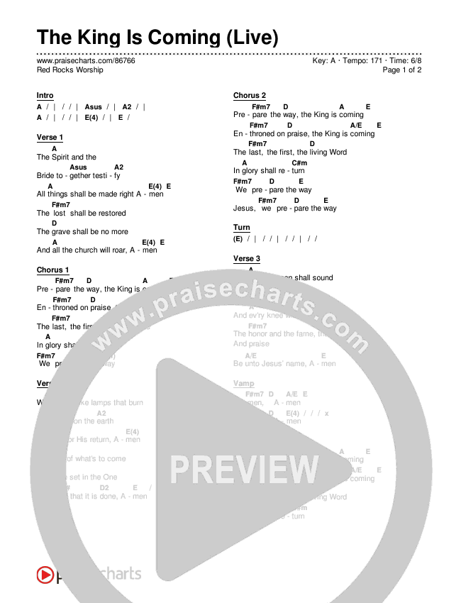 The King Is Coming (Live) Chords PDF (Red Rocks Worship)