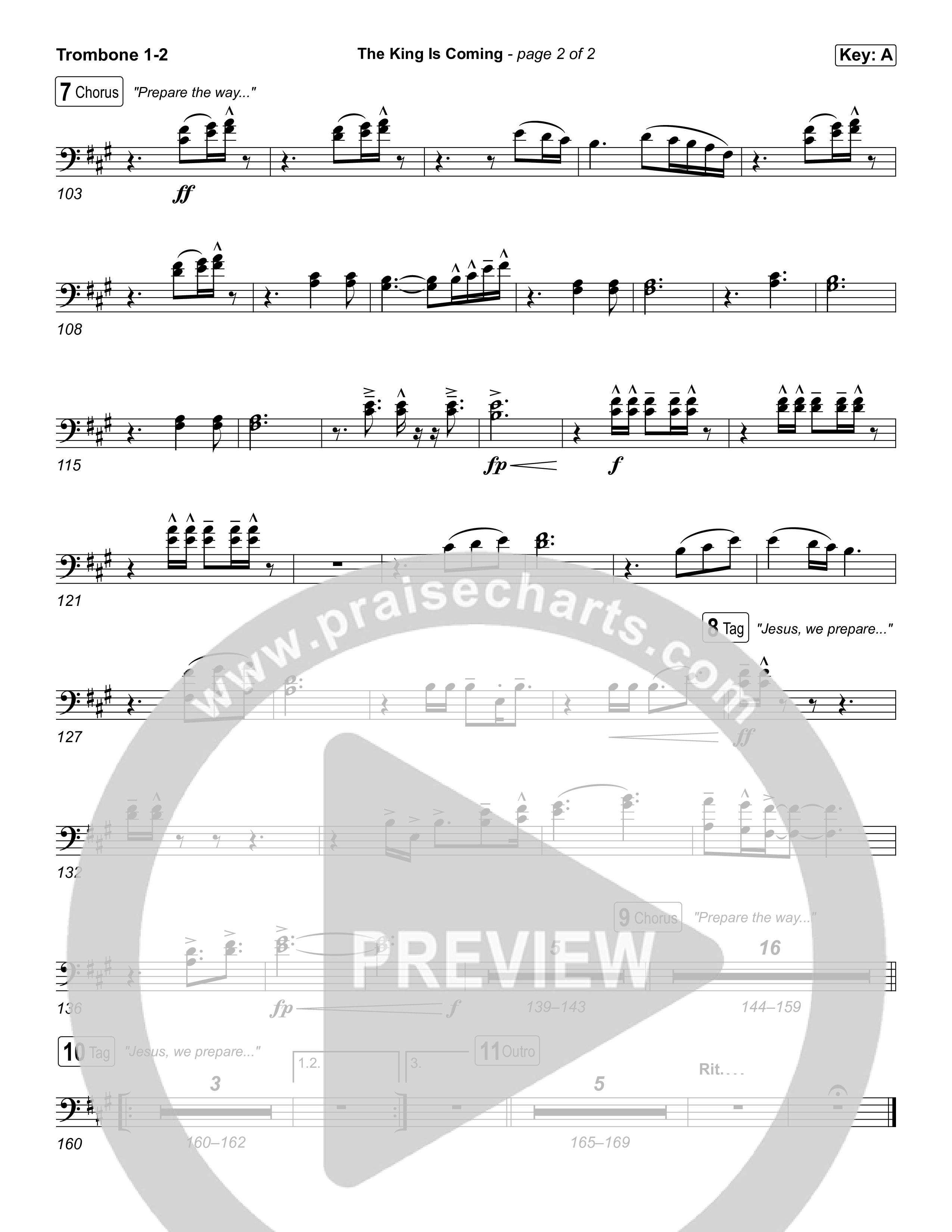 The King Is Coming (Live) Trombone Sheet Music PDF (Red Rocks Worship)