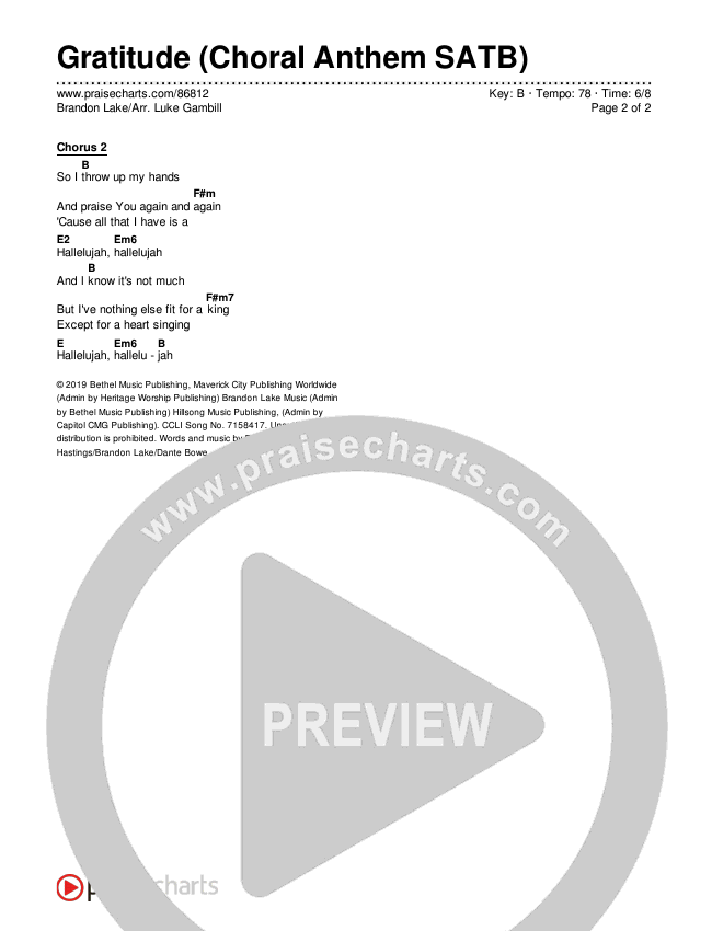 Gratitude (Choral Anthem SATB) Chords PDF (Brandon Lake / Arr. Luke Gambill)