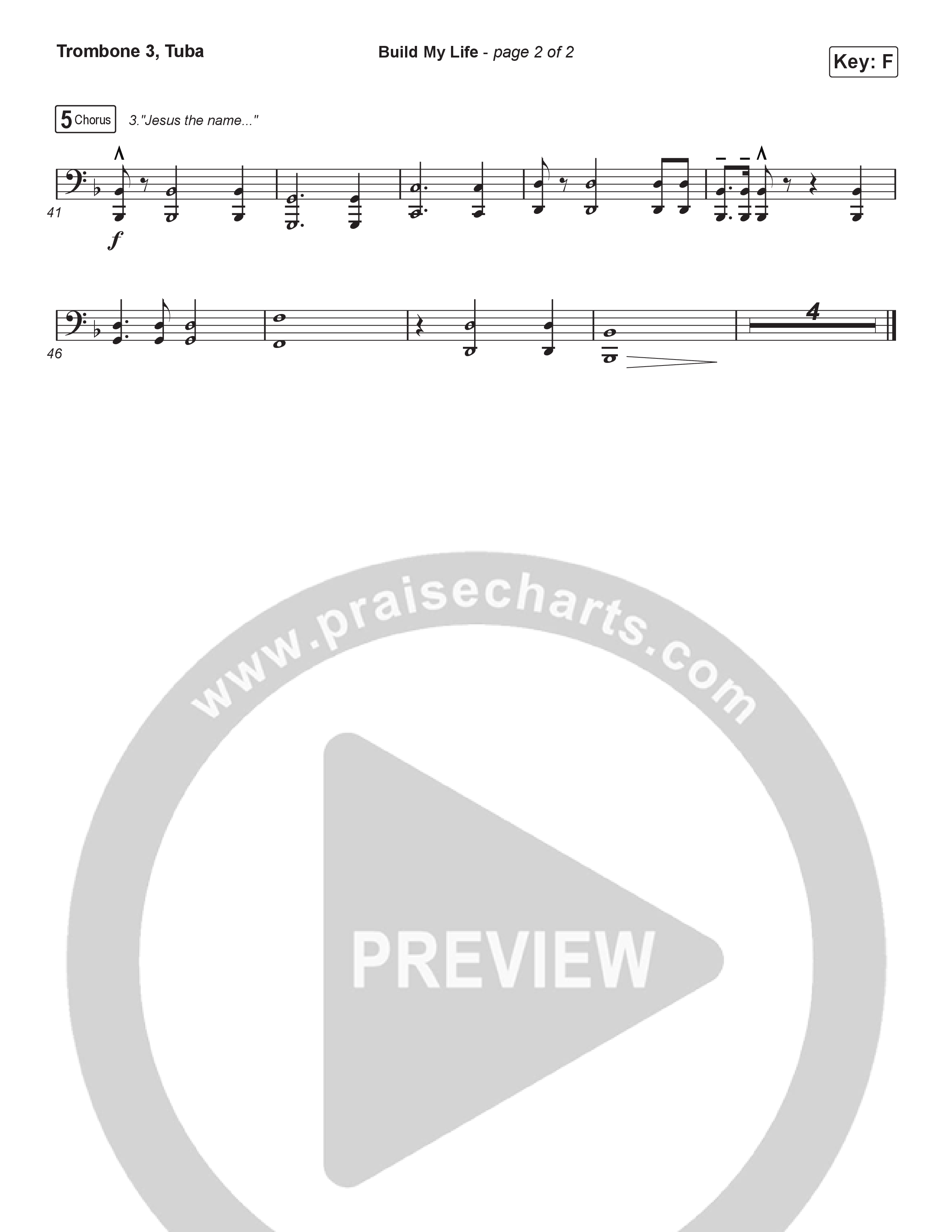 Download the Trombone 3/Tuba sheet music for Build My Life (Unison/2-Part) by Pat Barrett / Arr. Luke Gambill, from the album Pat Barrett. This song was arranged by Luke Gambill / Daniel Galbraith / Dave Iula in the key of F.