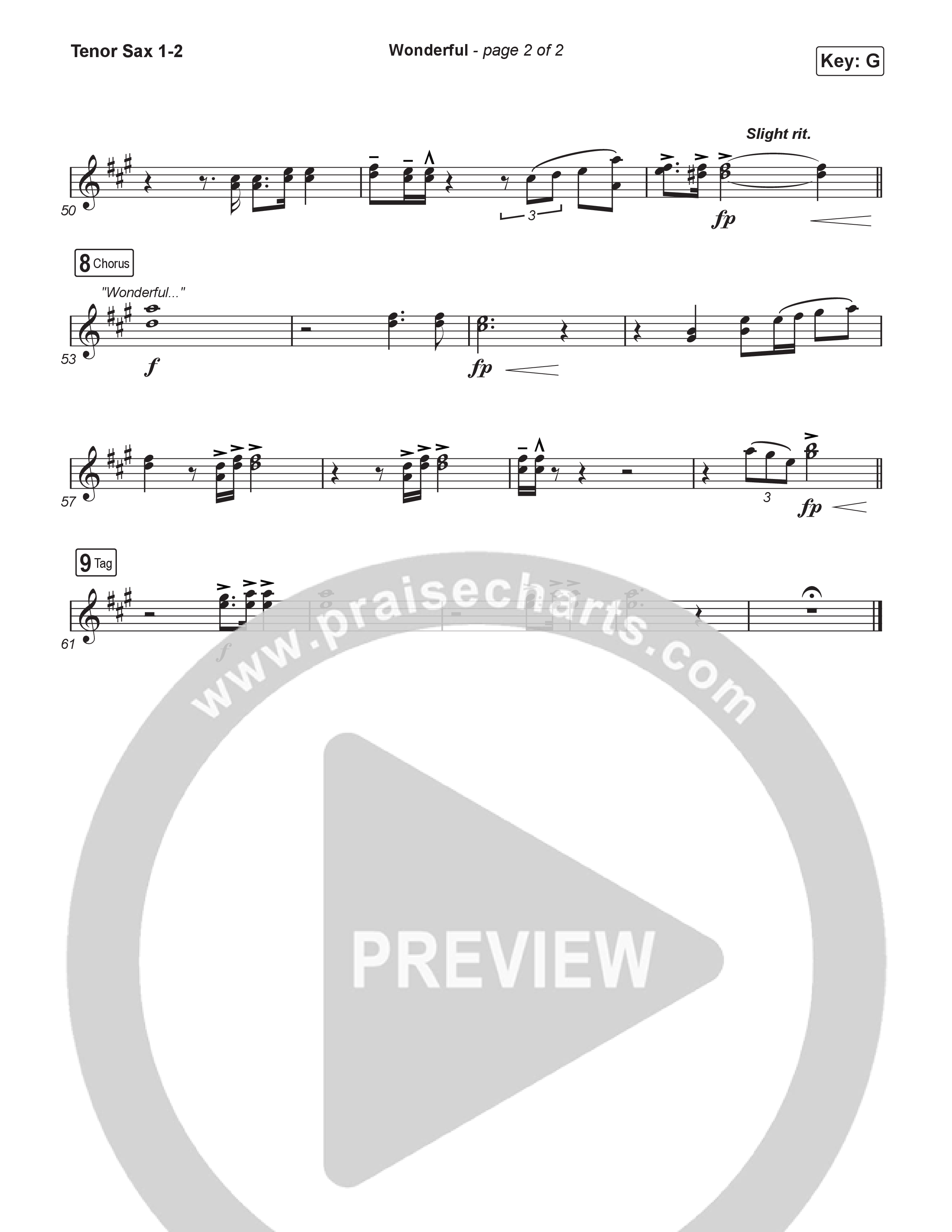 Download the Tenor Sax sheet music for Wonderful (Unison/2-Part) by CAIN / Arr. Luke Gambill, from the album Wonderful. This song was arranged by Luke Gambill / Daniel Galbraith in the key of G.