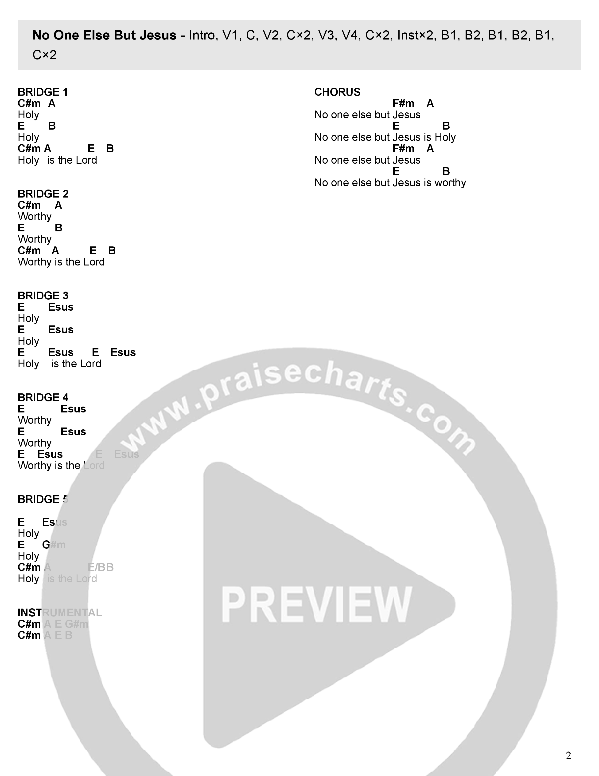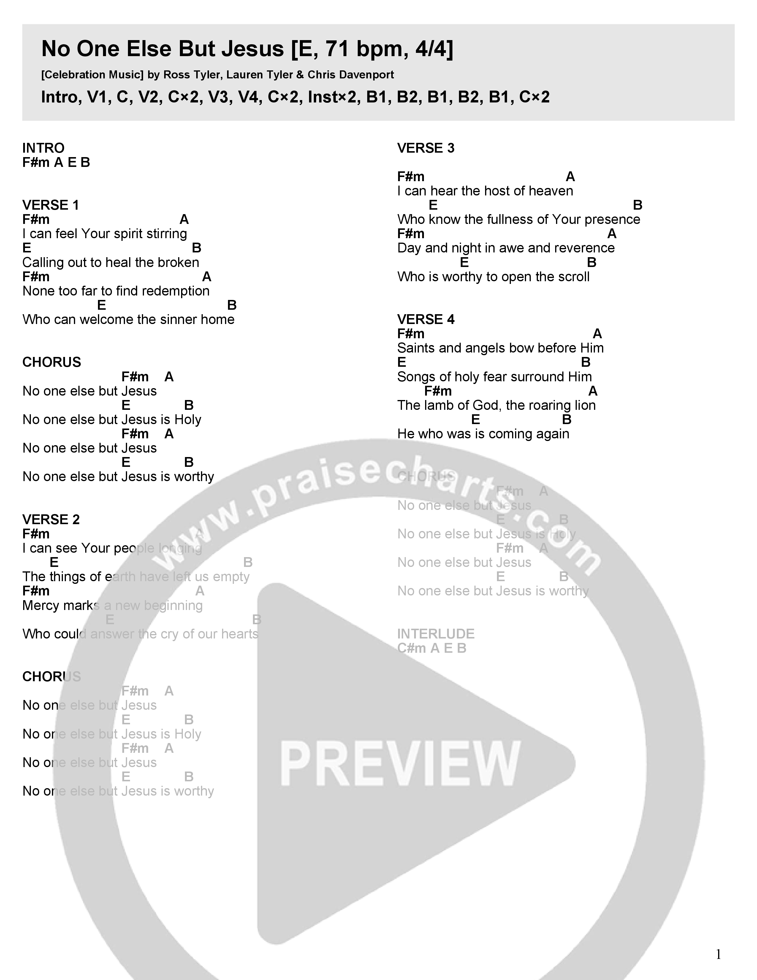 Download the PDF Chord Charts for No One Else But Jesus by Celebration Music, from the album Split The Sky.
