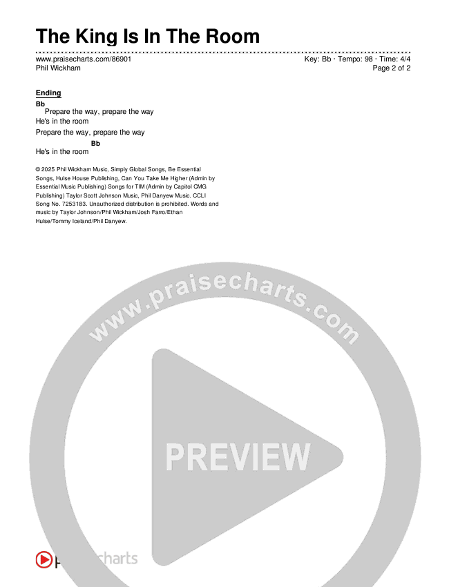 The King Is In The Room Chords PDF (Phil Wickham)