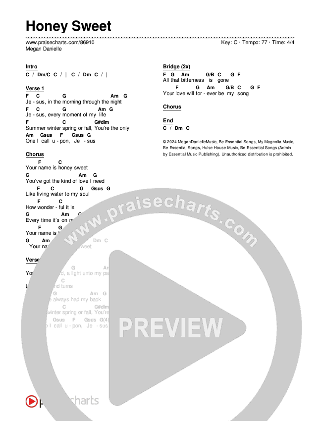 Download the PDF Chord Charts for Honey Sweet by Megan Danielle, from the album Honey Sweet.