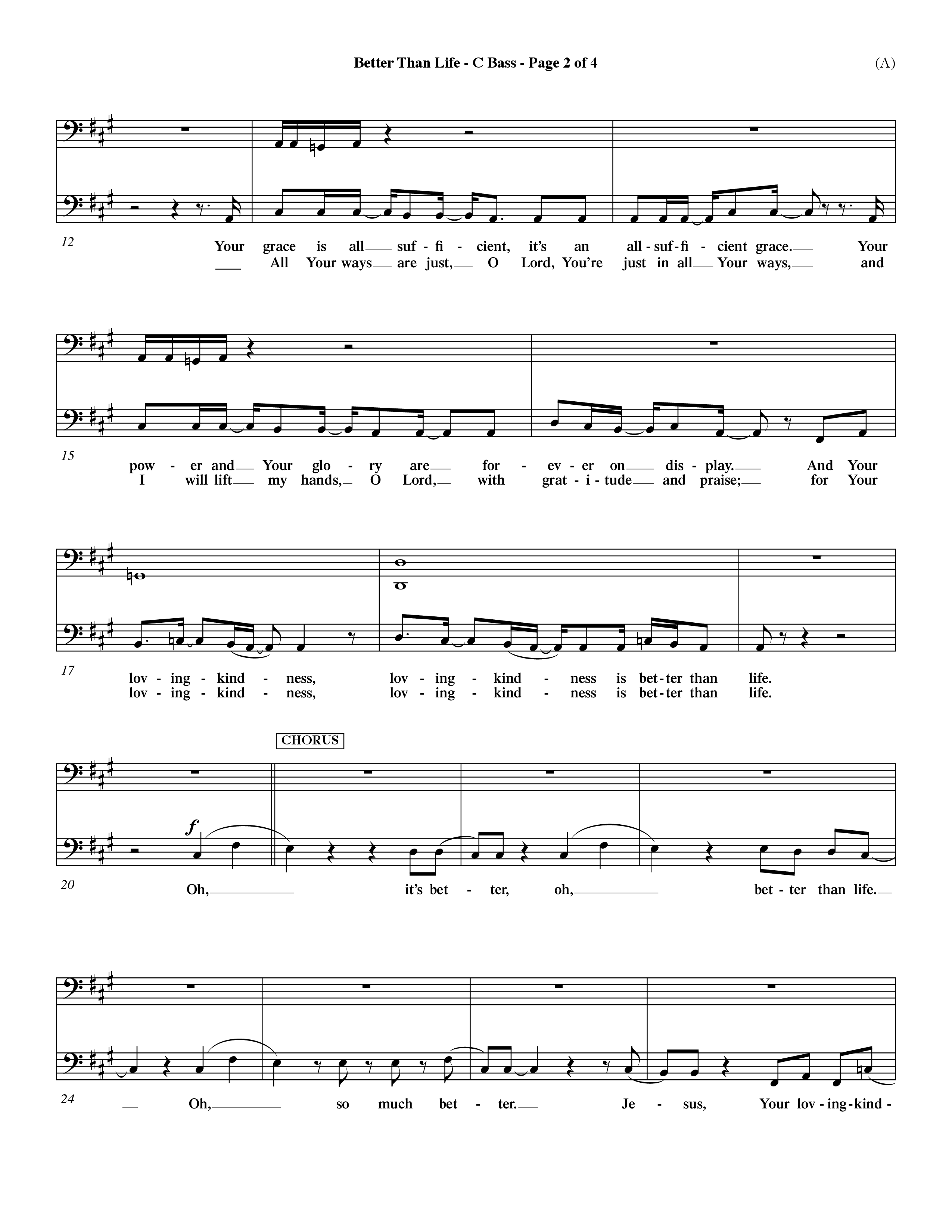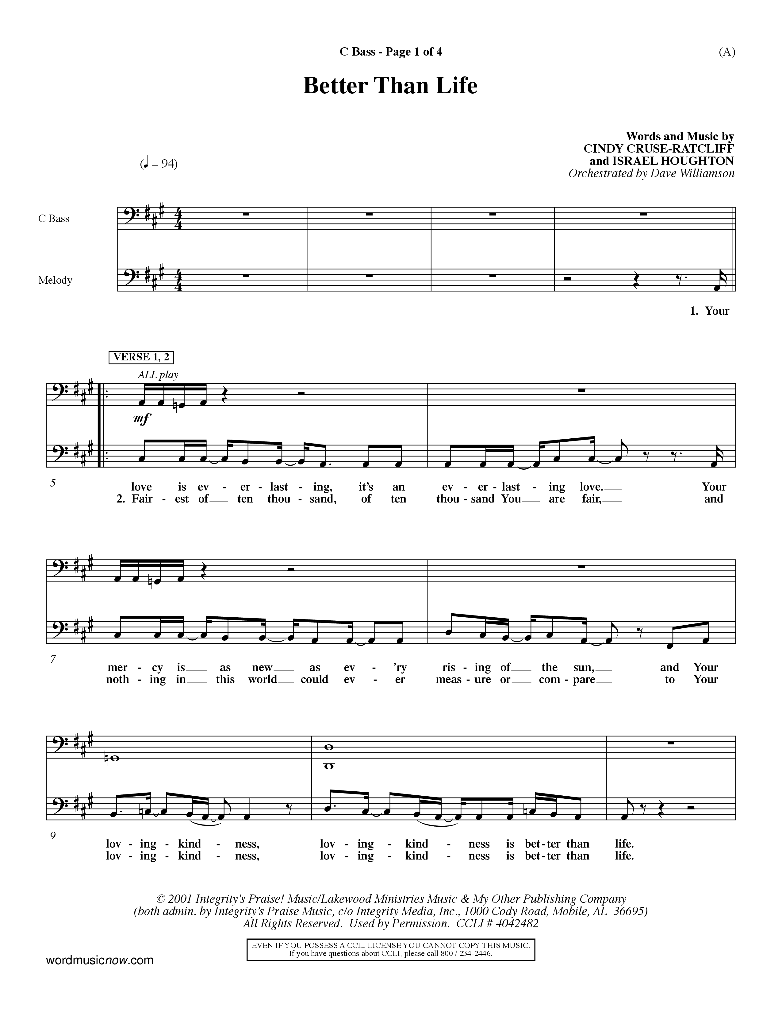 Download the Orchestration for Better Than Life (Choral Anthem SATB) by Word Music Choral / Orch. Dave Williamson, from the album More Songs for Praise & Worship 4. This song was arranged by Dave Williamson in the key of A, Bb.