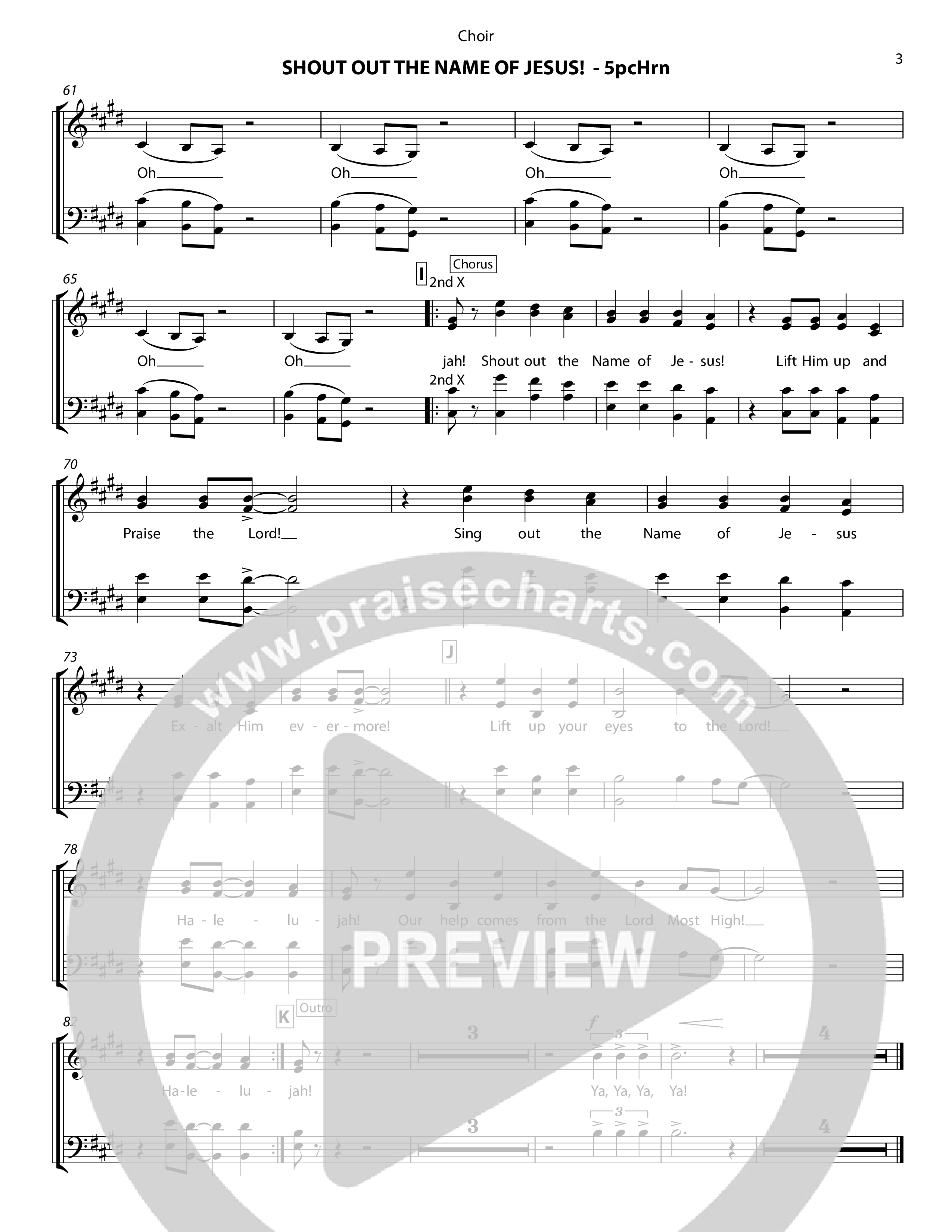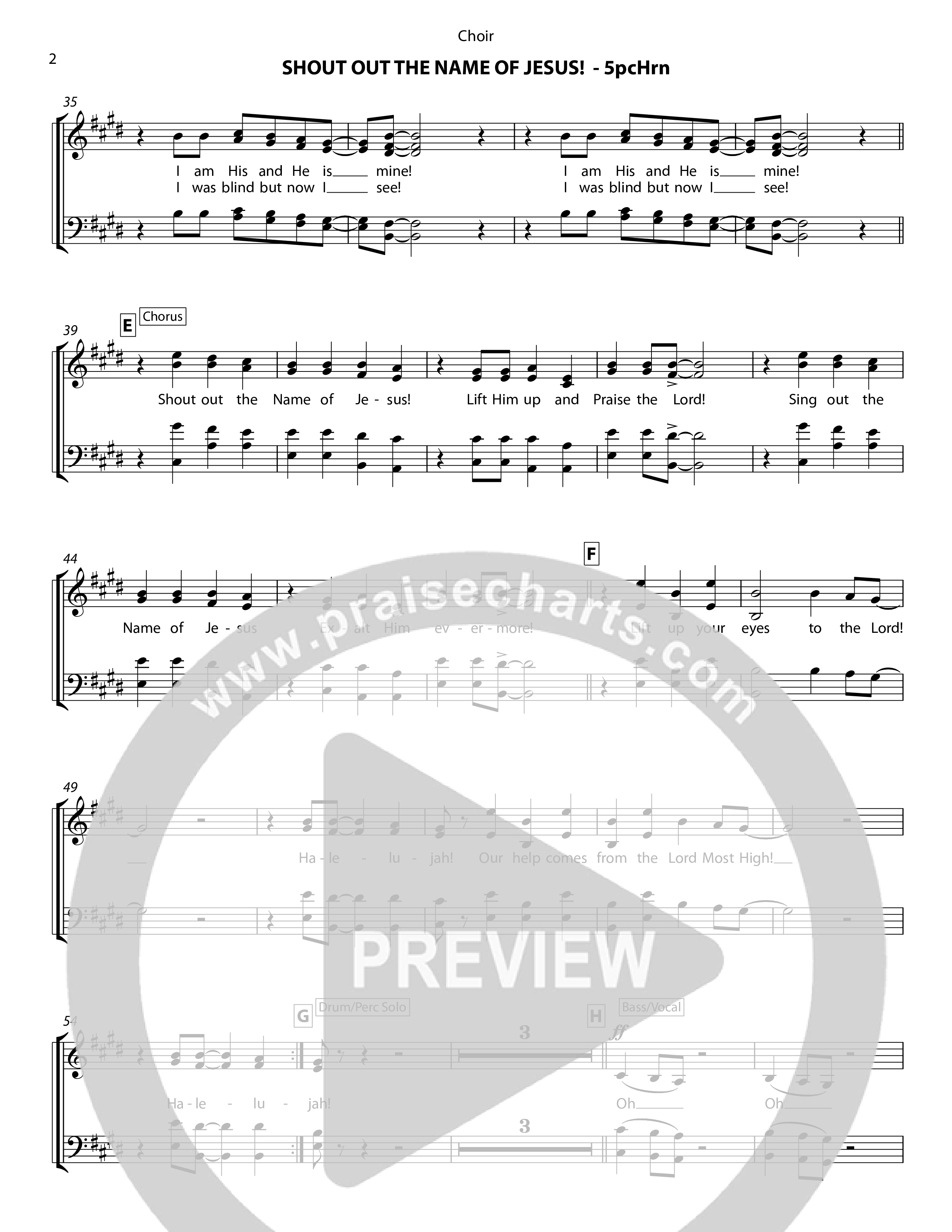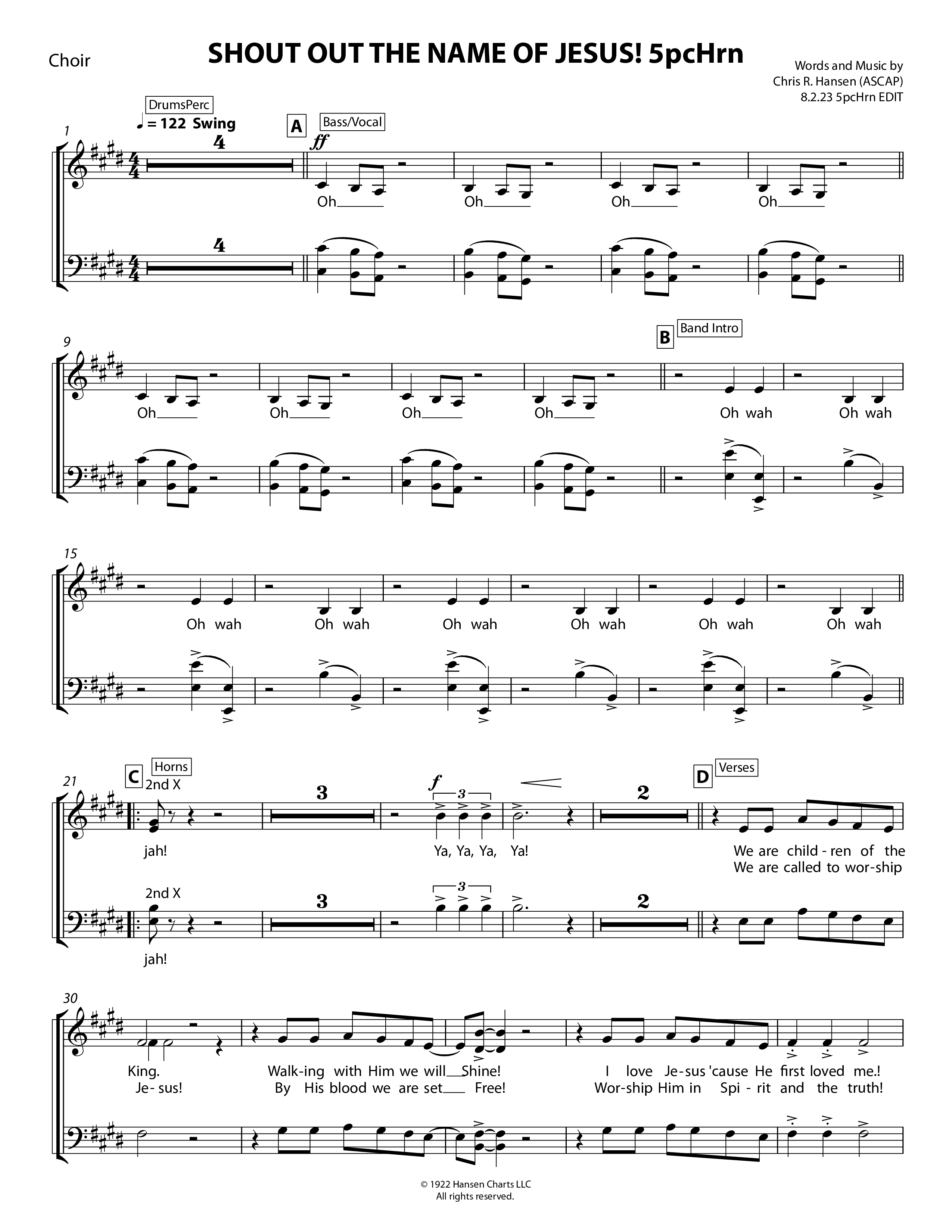 Download the Choir Sheet for Shout Out The Name Of Jesus (5 Piece Brass) by Chris Hansen, from the album Songs Of Chris Hansen. This song was arranged by Chris Hansen in the key of E.