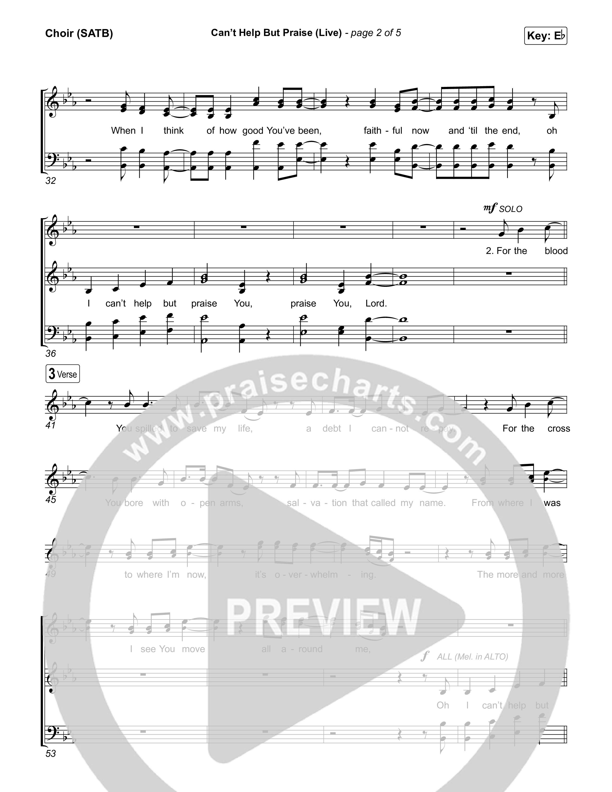 Download the Choir Sheet for Can't Help But Praise (Live) by Jordan Colle, from the album Can't Help But Praise. This song was arranged by Daniel Galbraith in the key of D, Eb.