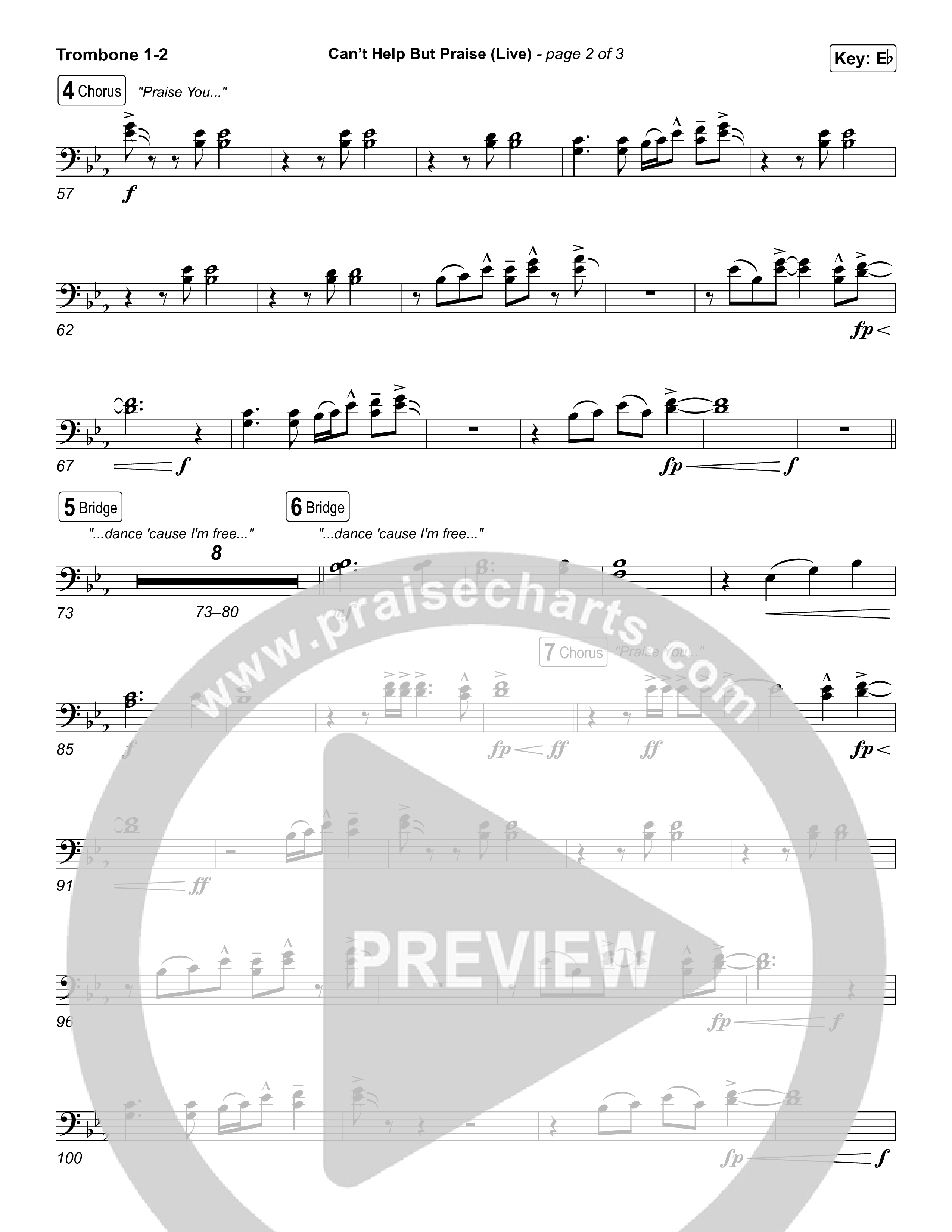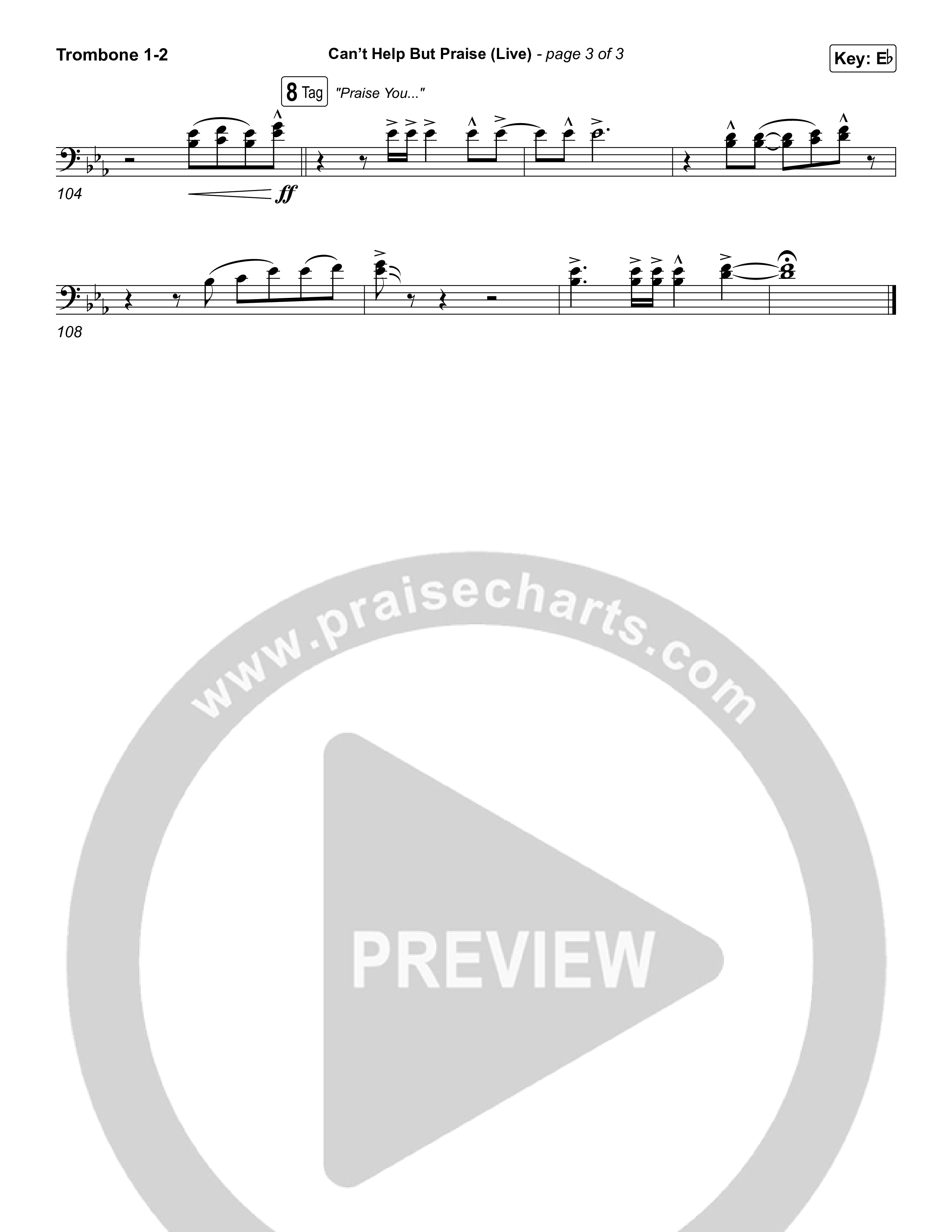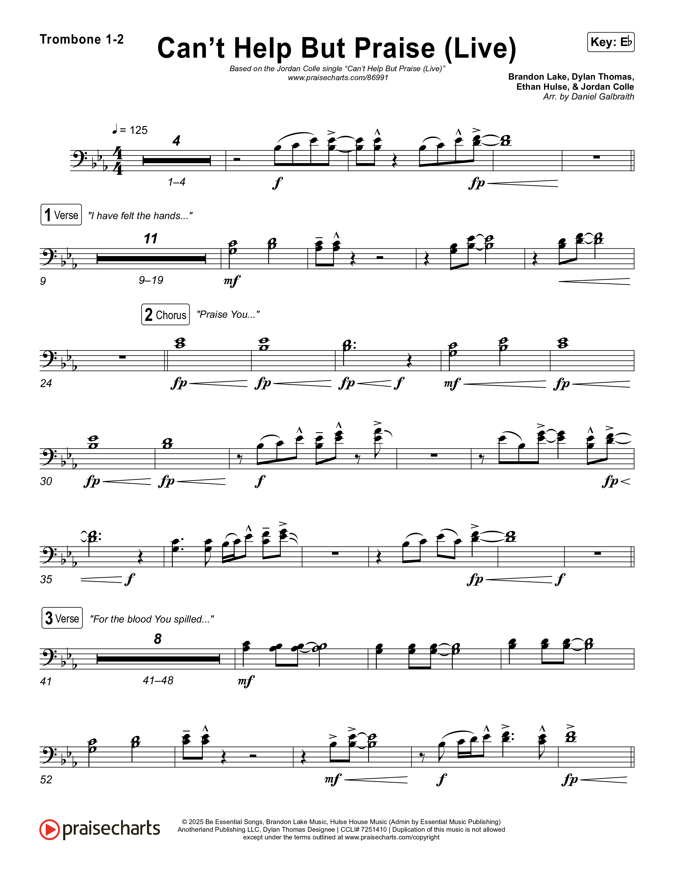 Download the Trombone 1,2 sheet music for Can't Help But Praise (Live) by Jordan Colle, from the album Can't Help But Praise. This song was arranged by Daniel Galbraith in the key of D, Eb.