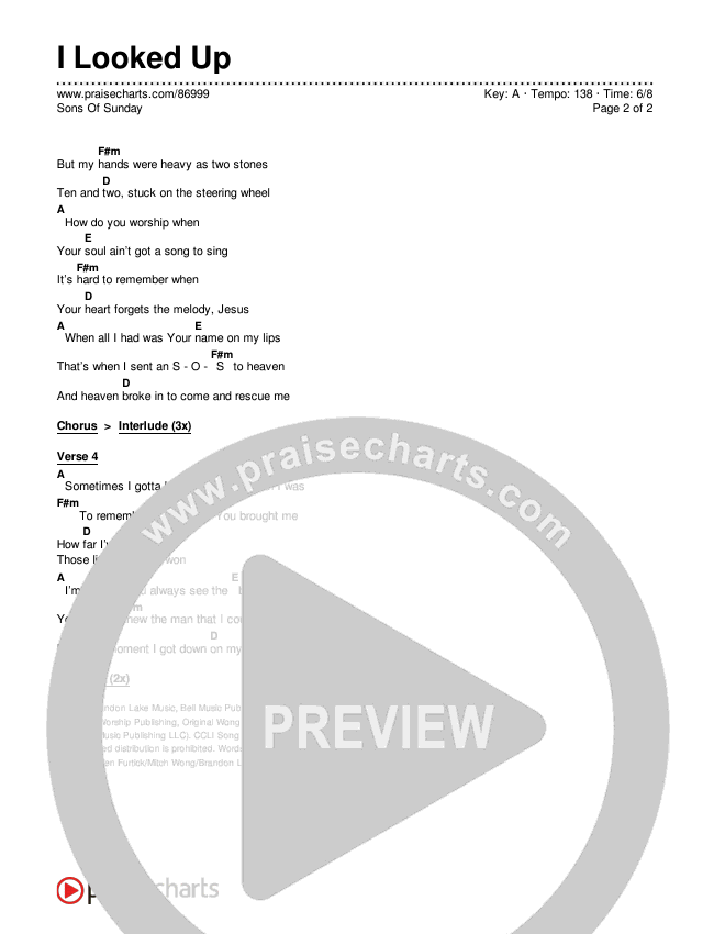 Download the PDF Chord Charts for I Looked Up by Sons Of Sunday, from the album Sons Of Sunday.